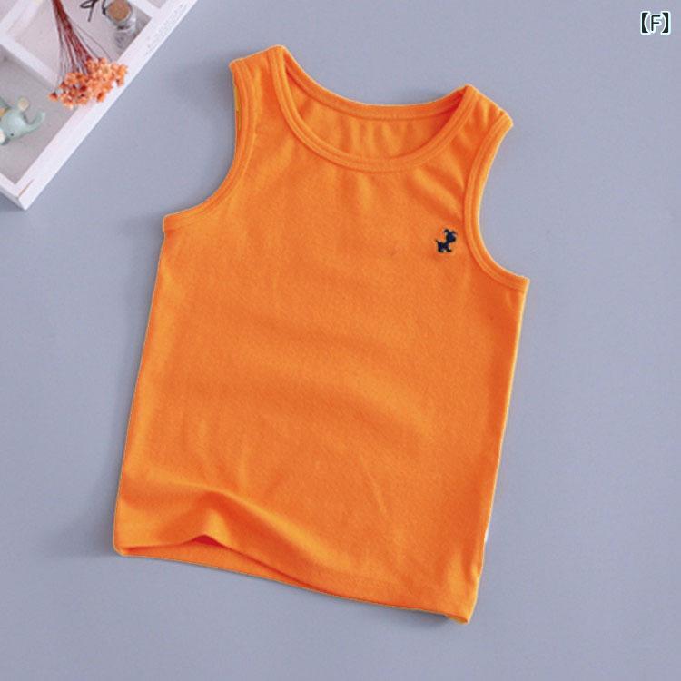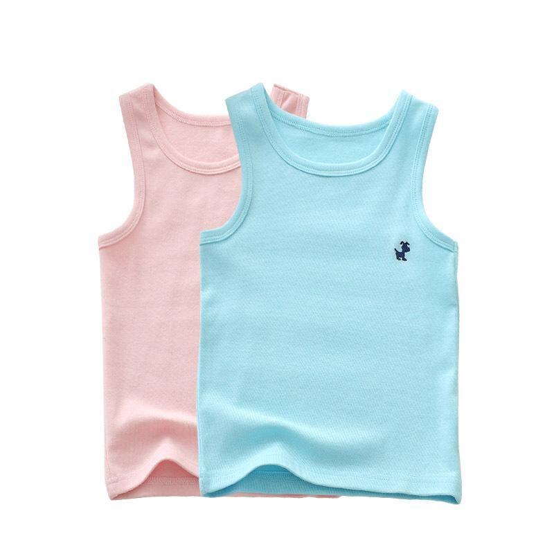 子供服 タンクトップ ノースリーブ 春夏 薄手 刺繍 小犬 男女兼用 キャンディカラー インナー トップス かわいい コットン 90 100 110 120 130 140 150 160