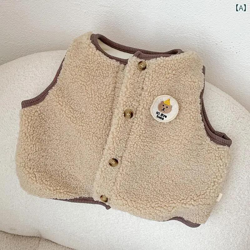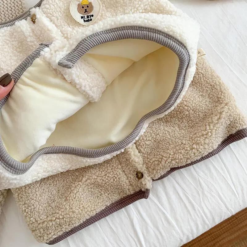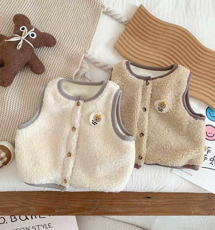 ベビー服 ベビー用 男女兼用 フリース ベスト 黄帽熊柄 裏起毛 防寒着 あったか 上着 チョッキ 普段使い