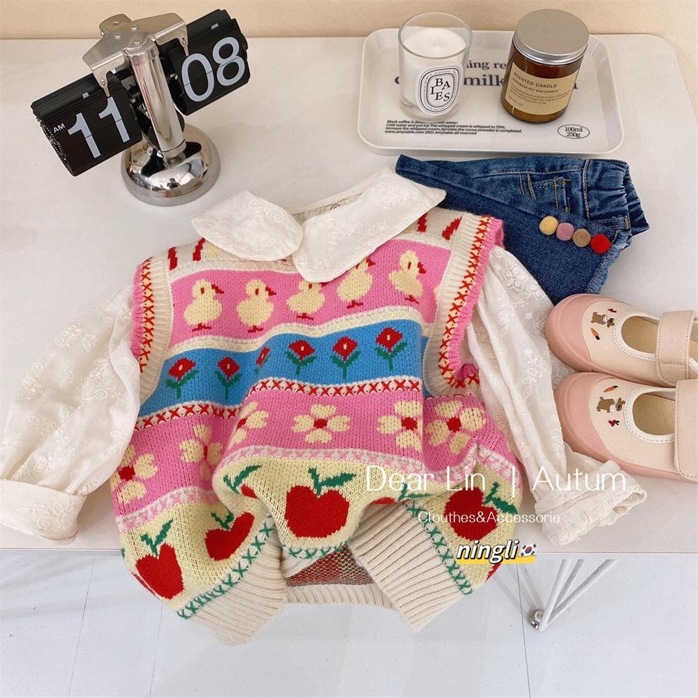 キッズ ニットベスト 女の子 かわいい 小黄鸭 コットン 秋冬 子供服 ベビー服 赤ちゃん 幼児 普段使い お出かけ