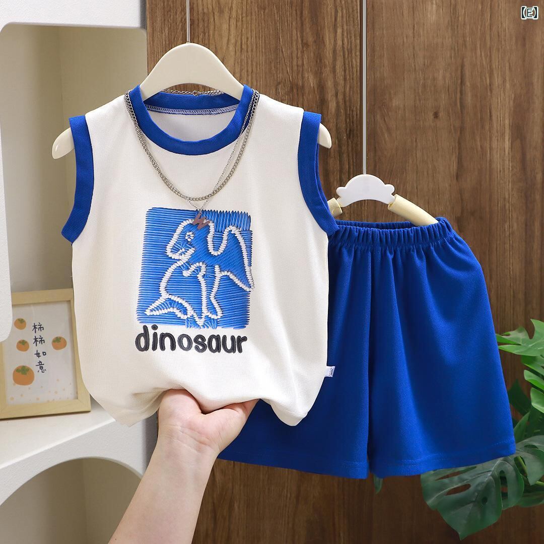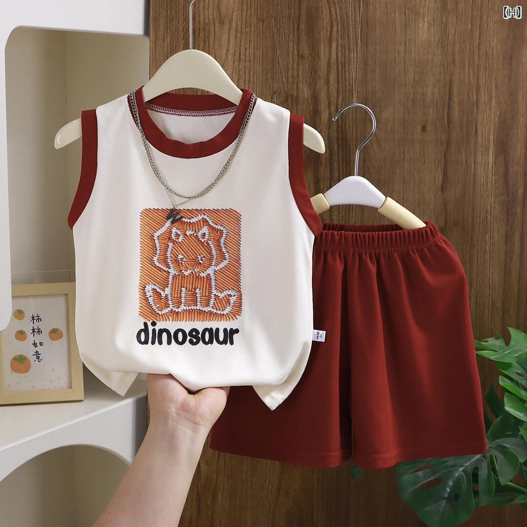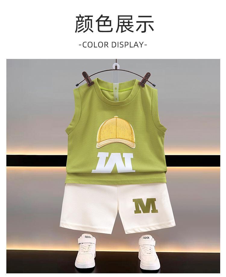 子供用タンクトップ & 短パンセット 男の子 ノースリーブ トップス ショーツ 韓国風 薄手 ベビー服 幼児 上下セット 80cm 90cm 100cm 110cm 120cm 130cm 140cm ポリエステル ブラック グリーン イエロー コーヒー