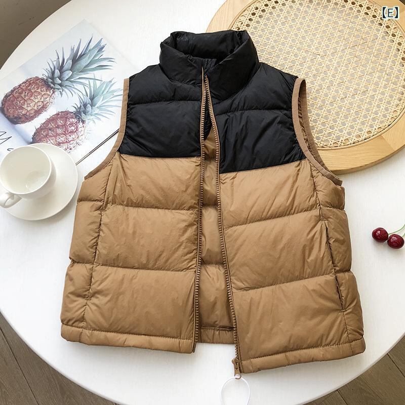子供服 ベスト 春秋 薄手 ダウンベスト 軽量 防寒 暖か 配色 女の子 男の子 普段使い アウトドア ミルクホワイト ピンク 紺色 ブルー ベージュ オレンジグリーン 110cm 120cm 130cm 140cm 150cm 160cm