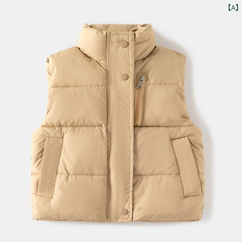 子供服 ベスト 秋冬 中綿入り 男の子 女の子 ジップアップ 厚手 防寒 チョッキ アウター カーキ ブラック グリーン ホワイト レッド イエロー