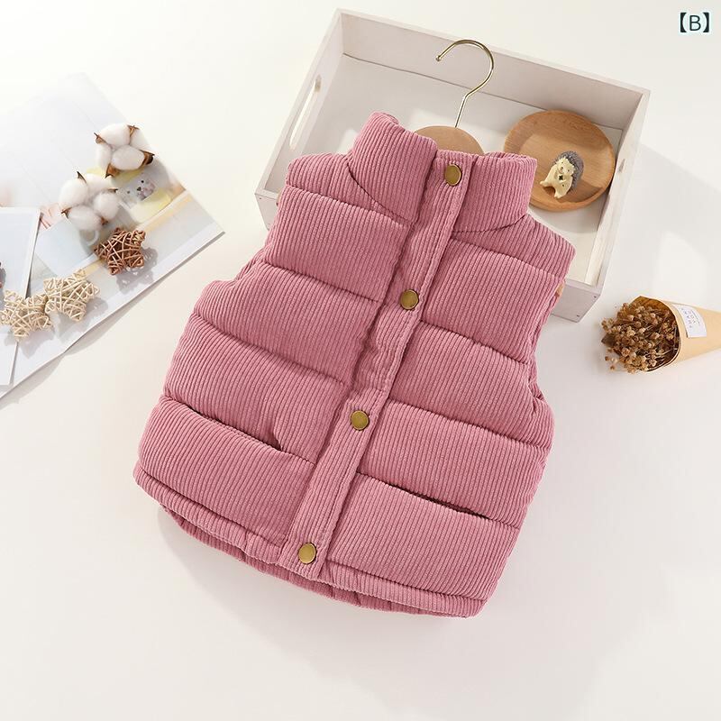 子供服 ベスト 秋冬 中綿ベスト 男女兼用 コーデュロイ スタンドカラー アウター 防寒 チョッキ 普段使い お出かけ