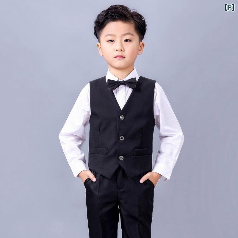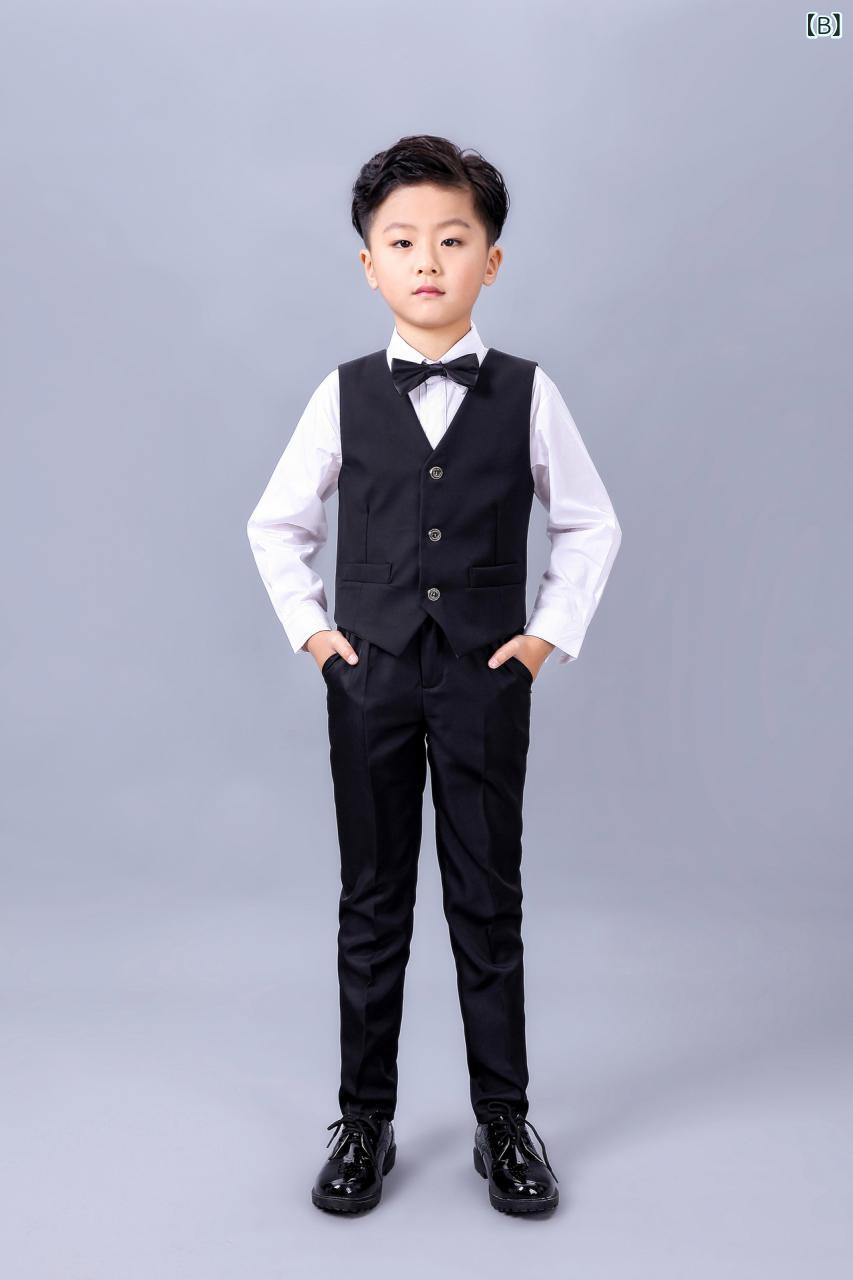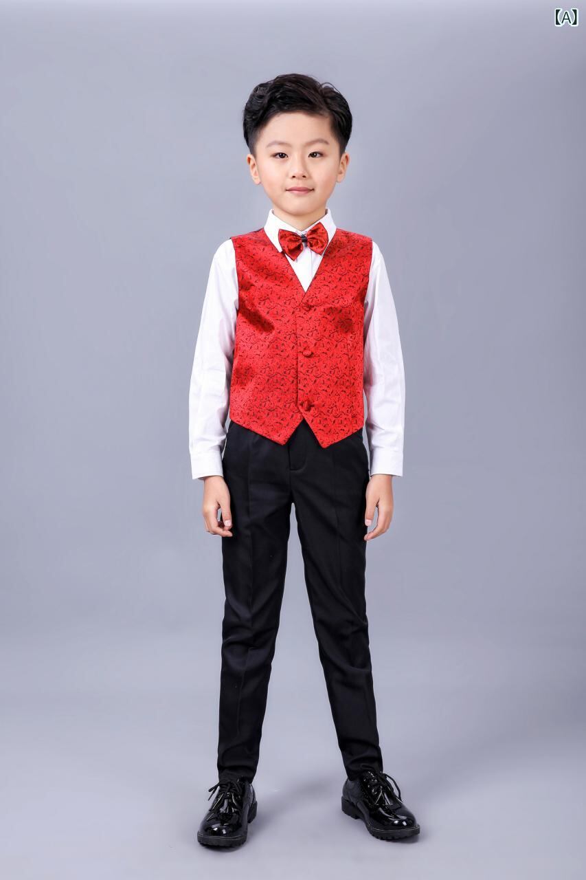 子供用フォーマルベストセット 男の子 スーツ 発表会 結婚式 花婿の介添え 舞台衣装 90 100 110 120 130 140 150 160 赤 黒 金 銀 コットン混紡