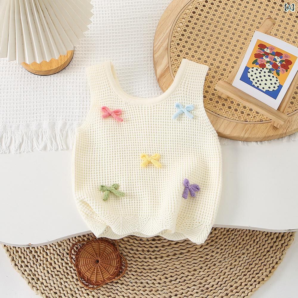 子供服 ニットベスト 春秋 女の子 ベビー チョッキ かわいい 蝶結び 薄手 普段着 レイヤードスタイル ポリエステル