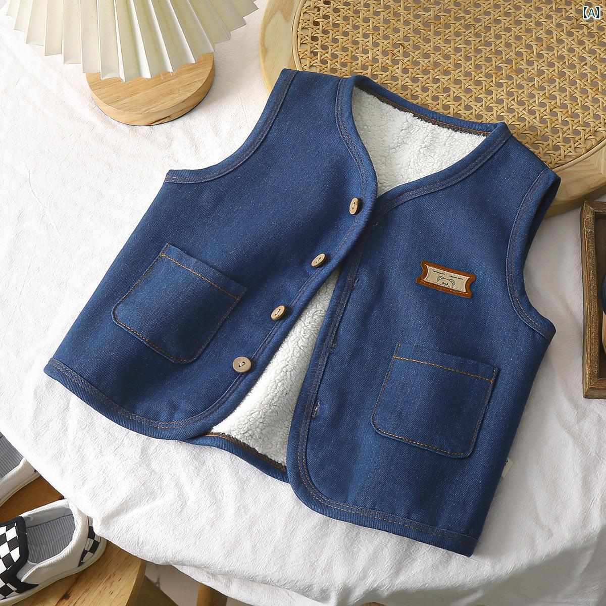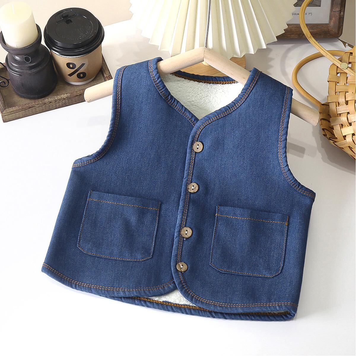 子供服 ベスト 秋冬 子供 デニムベスト 裏起毛 厚手 韓国風 おしゃれ チョッキ アウター
