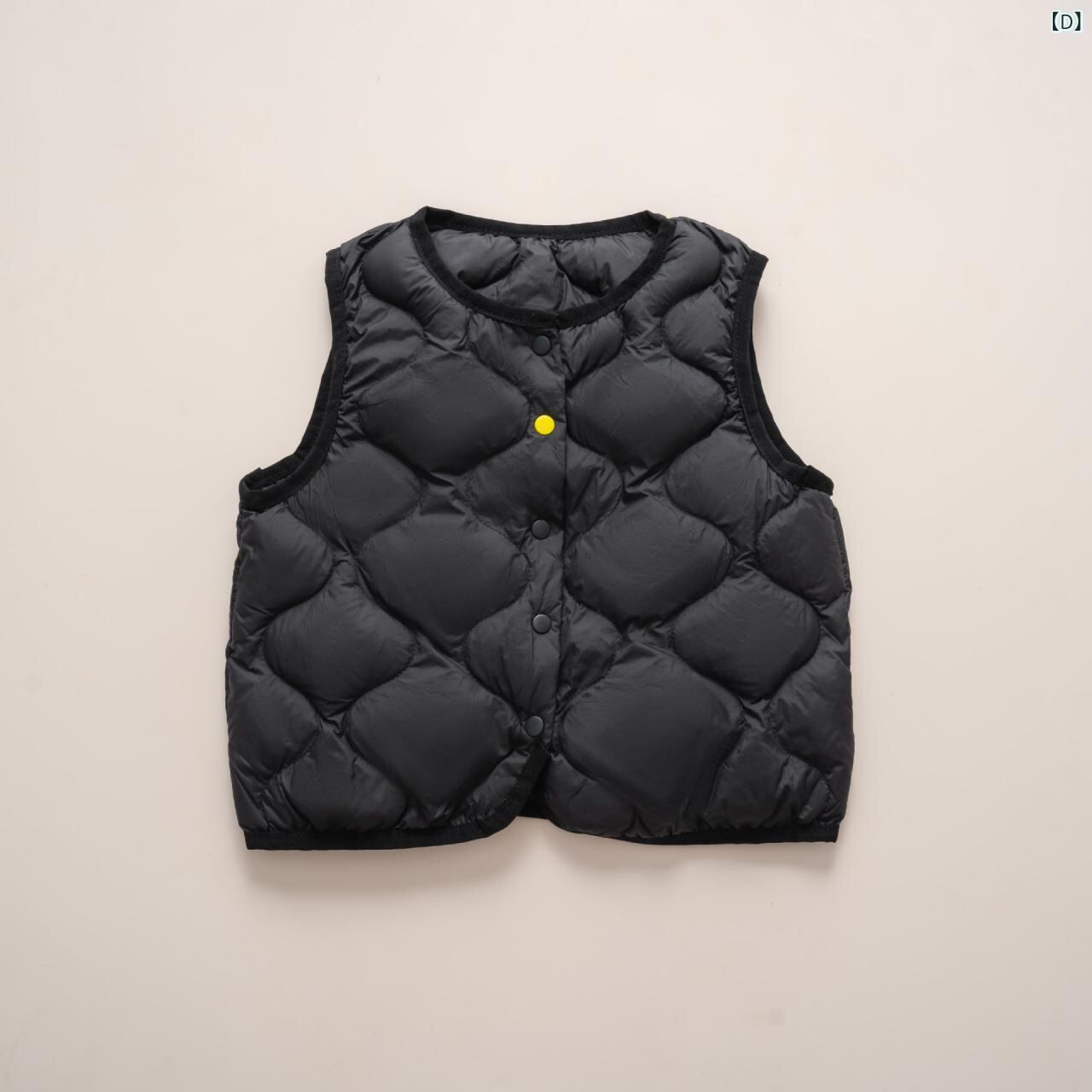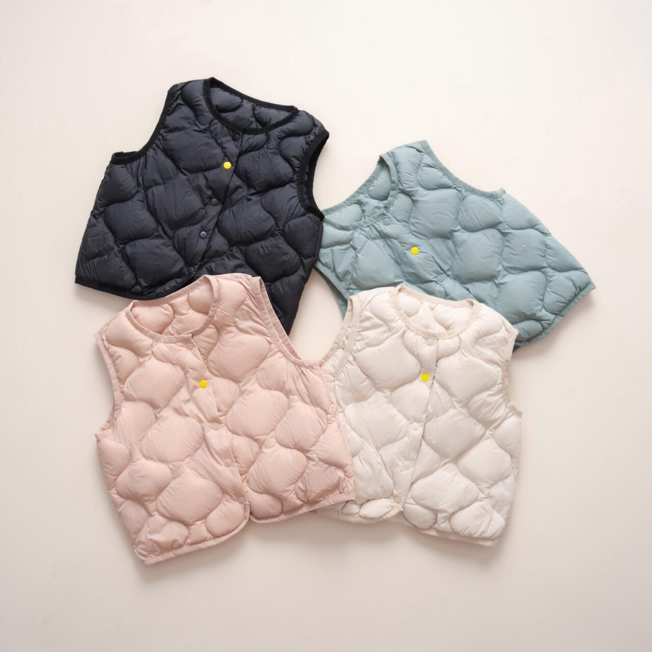 子供用ダウンベスト キッズ 軽量 薄手 防寒 インナーベスト 男の子 女の子 ショート丈 ノースリーブ チョッキ 無地 秋冬 春秋 100cm 110cm 120cm 130cm 140cm 150cm 160cm