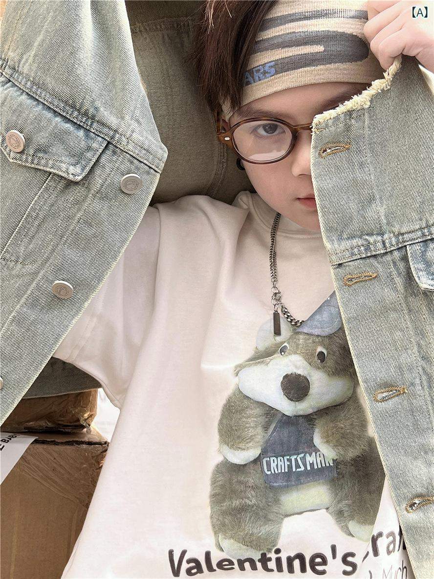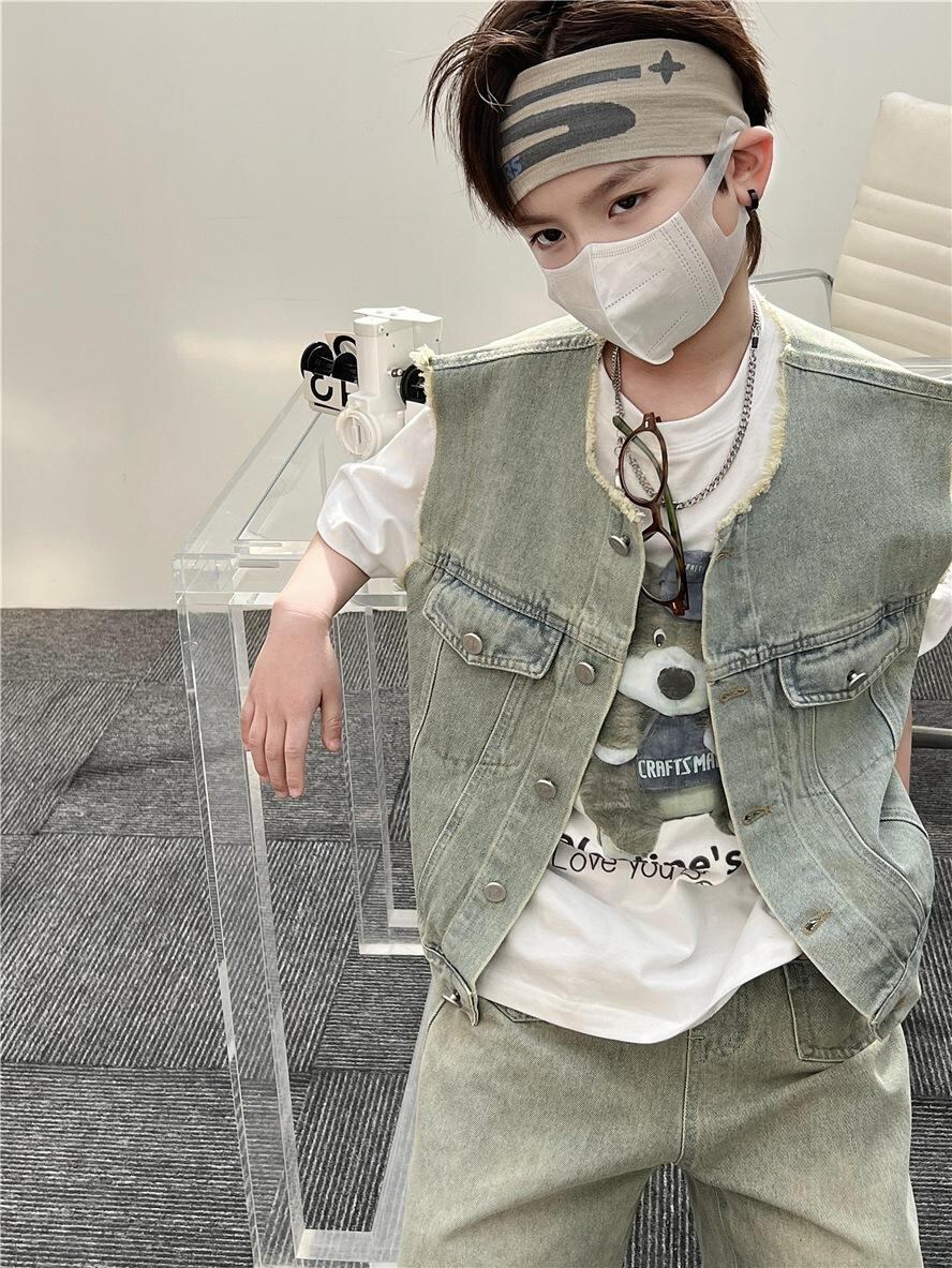 子供服 デニムベスト 男女兼用 アメリカンレトロ カットオフ ノースリーブ ジャケット アウター 普段使い お洒落着