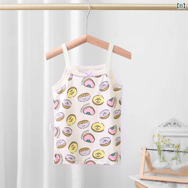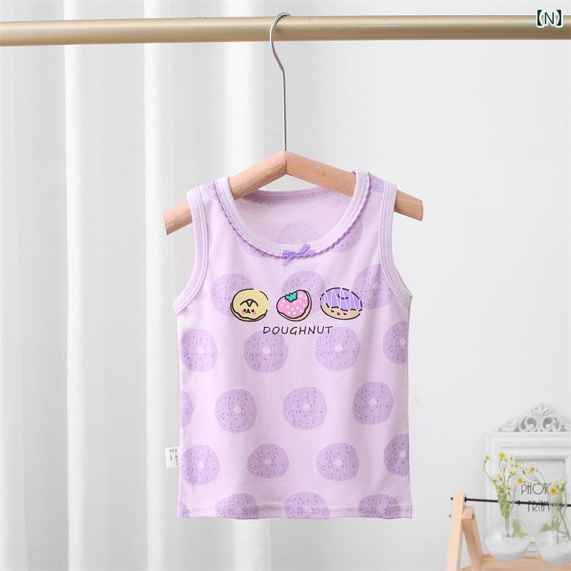 子供服 タンクトップ 女児 キャミソール 精梳綿100% ノースリーブシャツ 吊り型 工字型 インナーシャツ 肌着 柔らかい かわいい カートーンプリント 春夏