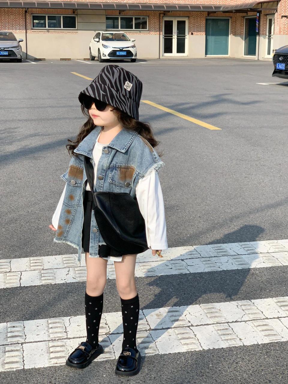 子供服 女の子 デニムベスト 韓国風 春秋 中古風 ダメージ加工 ノースリーブ ペイント デニム ジャケット アウター