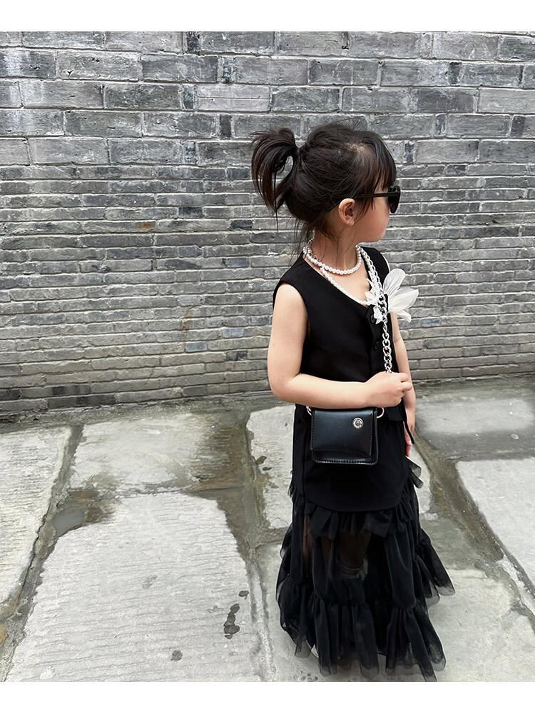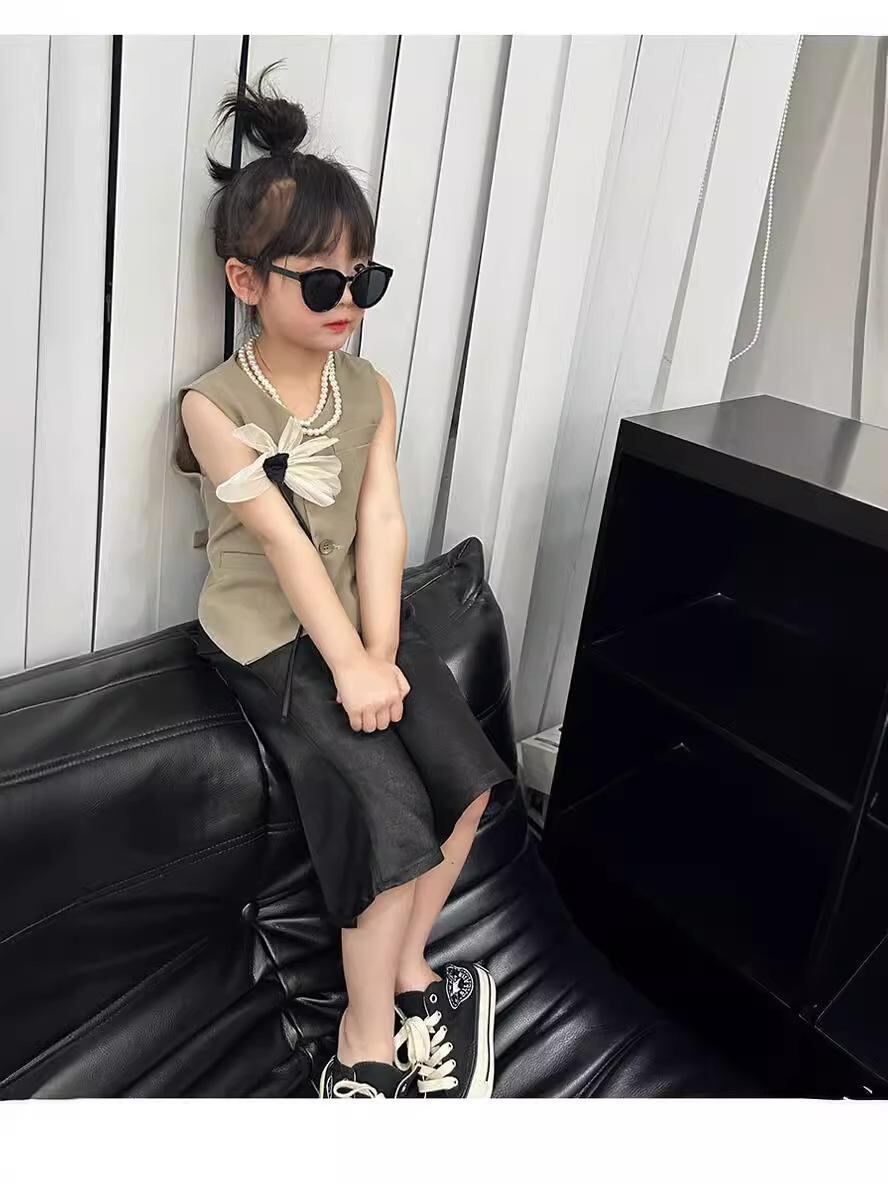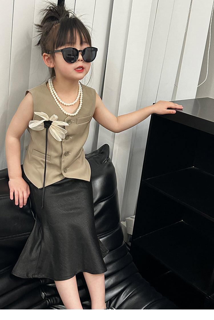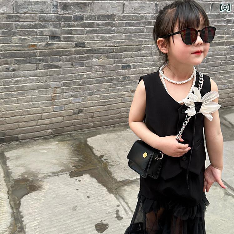 子供服 ベスト 女の子 春夏 無袖 カーディガン トップス 韓国風 かわいい おしゃれ お出かけ着 普段着 ブラック ベージュ 90cm 100cm 110cm 120cm 130cm 140cm 150cm 160cm