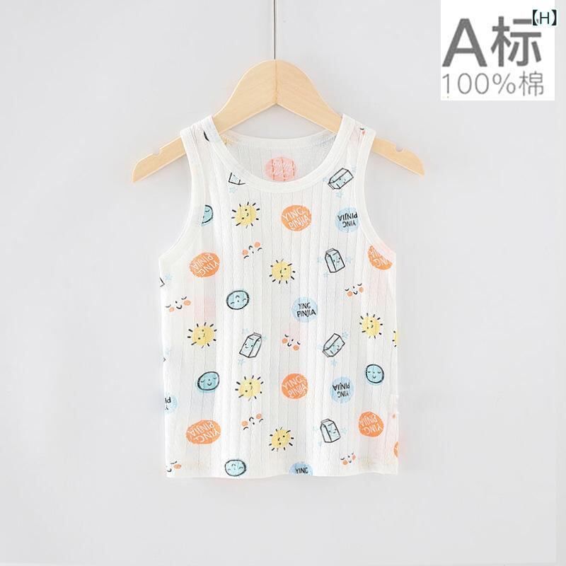ベビー キッズ 子供用 ベスト 夏 薄手 ノースリーブ 男の子 女の子 幼児 赤ちゃん 綿100% 接触冷感 部屋着 かわいい カートゥーン アニマル柄