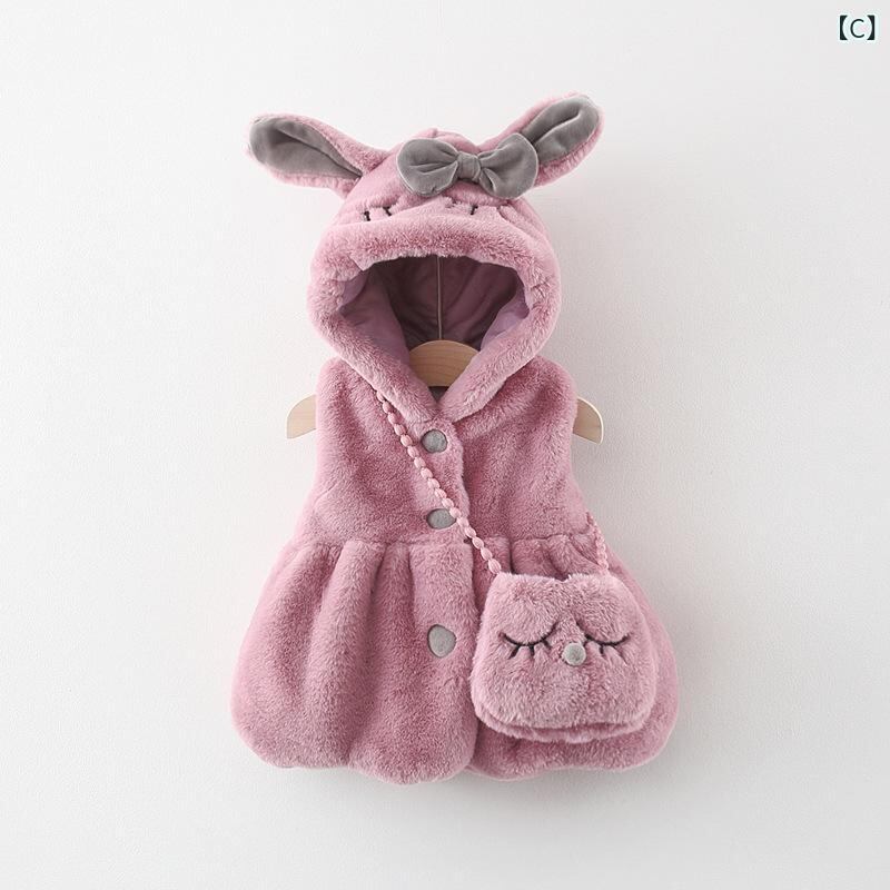 子供服 ベビー服 ベスト 秋冬 女の子 韓国風 かわいい カジュアル アウター 赤ちゃん 厚手 防寒 上着 フード付き 綿 ウサギ耳 白 ピンク系 紫 73 80 90 100 110