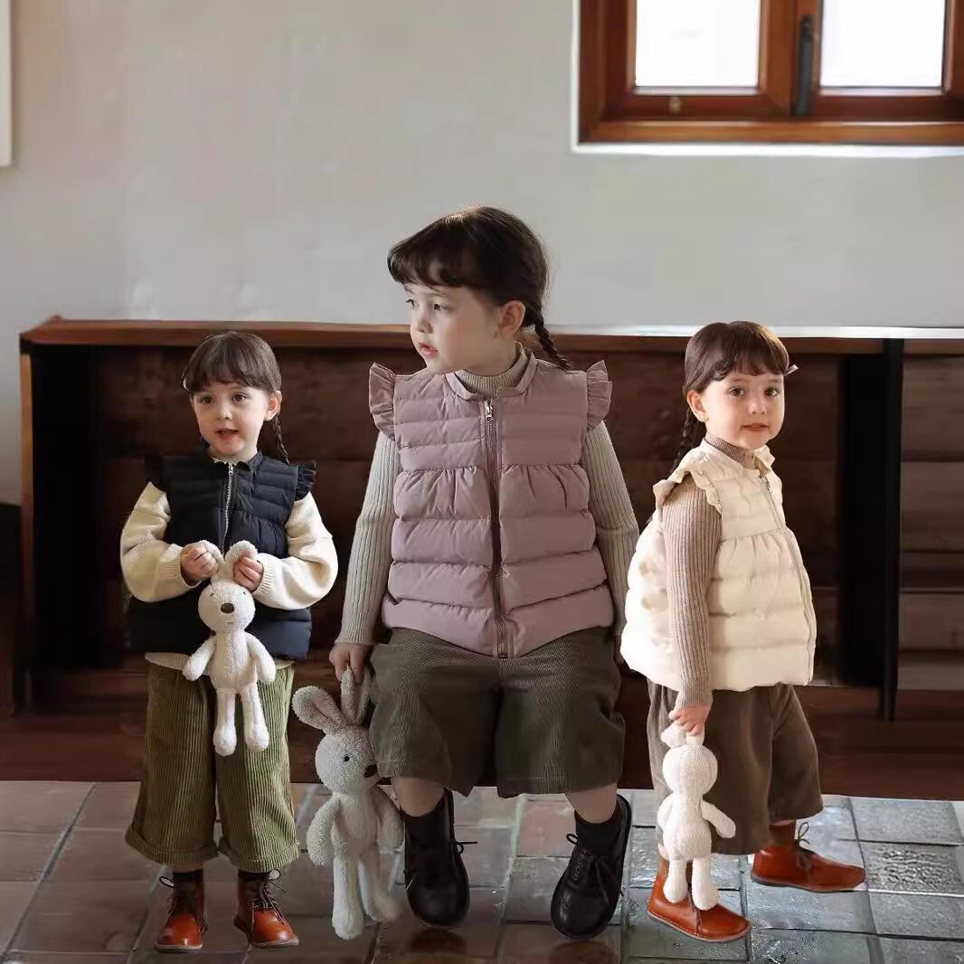 子供服 ベスト 女の子 小学生 羽織り かわいい チョッキ 防寒着 アウター ベビー キッズ 中綿入り あったか 秋冬 ピンク系 アイボリー ブラック