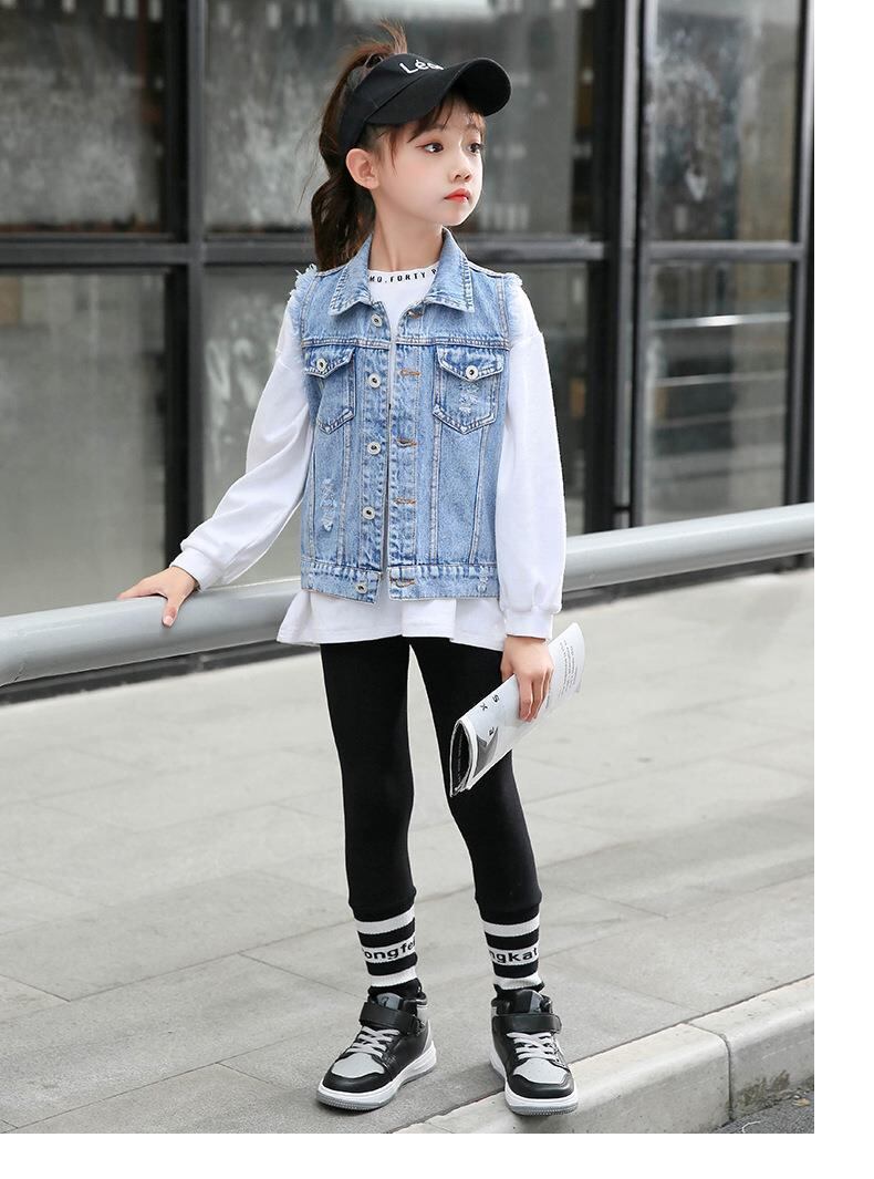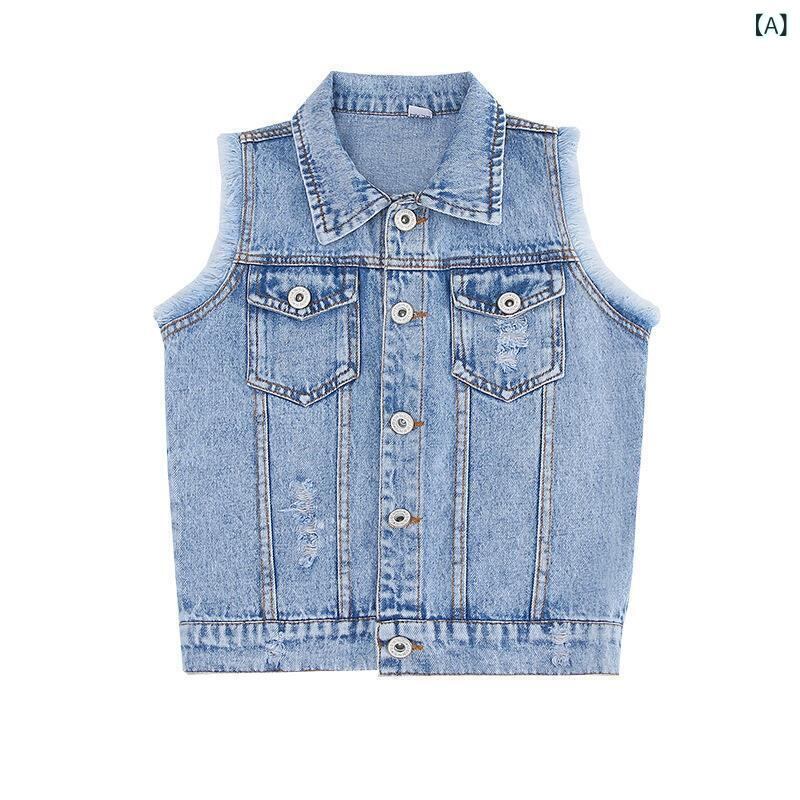 子供服 ベスト 女の子 デニム 春秋 韓国風 シングルブレスト アウター 普段使い 中 বড় キッズ 110cm 120cm 130cm 140cm 150cm 160cm