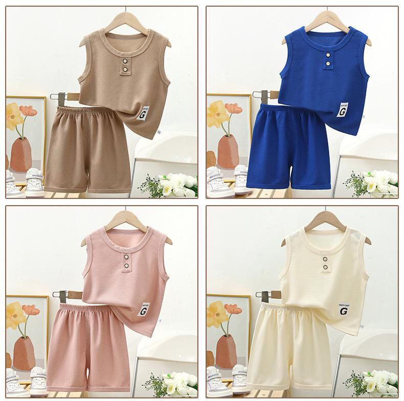 子供服 ベスト 短パン セットアップ ワッフル ベビー 薄手 夏服 男の子 女の子 上下セット 部屋着 パジャマ 80 90 100 110 120 130 140
