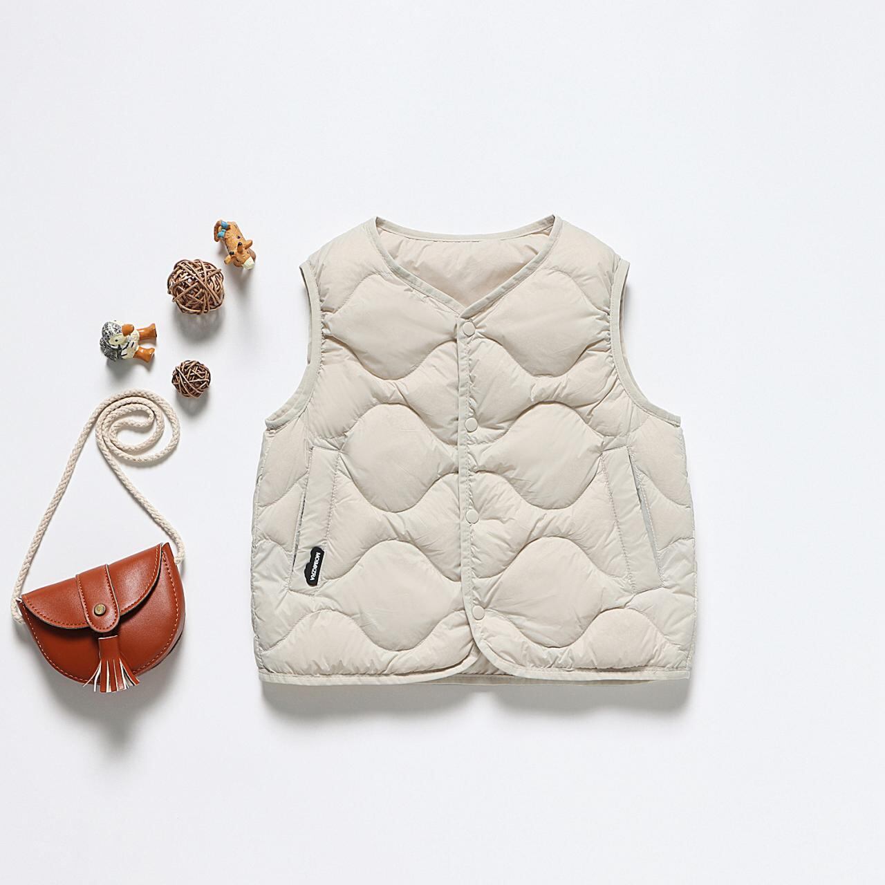子供服 ダウンベスト 秋冬 ライトウェイト カジュアル 快適 インナーウェア アウターウェア ボーイズ ガールズ ダックダウン 防寒着 ストライプ 格子柄 無地 ポリエステル