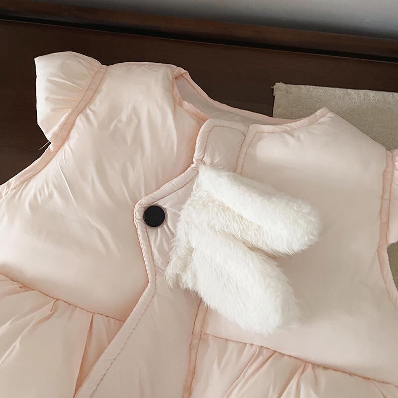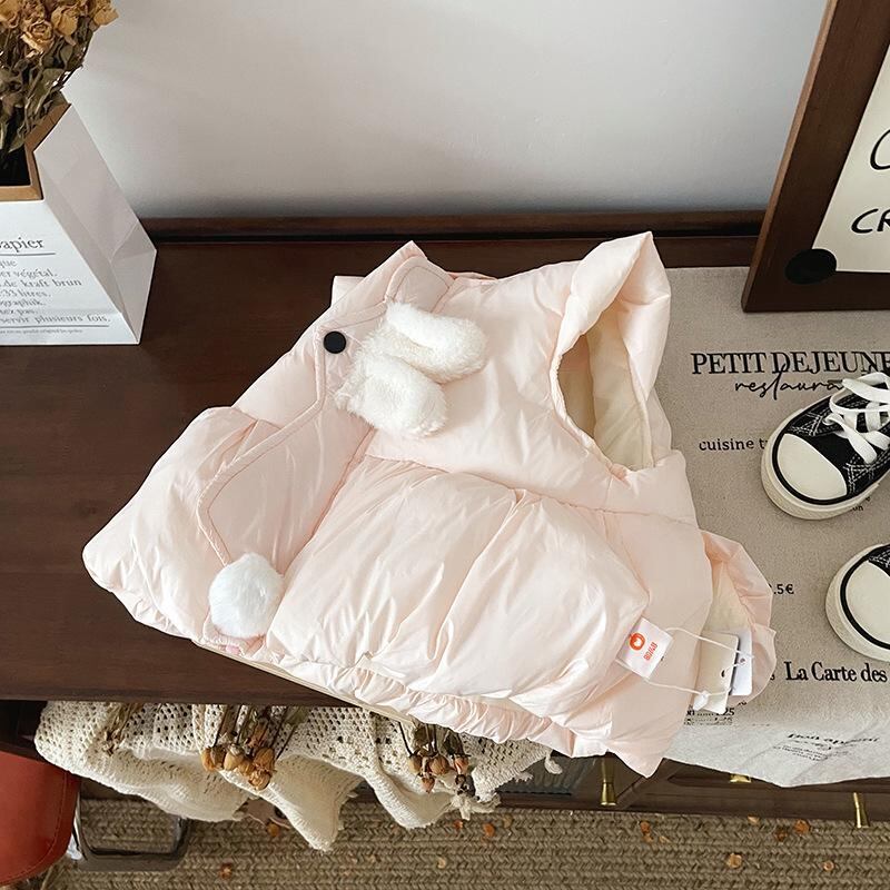 子供服 ベスト 秋冬 韓国風 ウサギ柄 厚手 ポリエステル かわいい 防寒着 アウター ピンク系