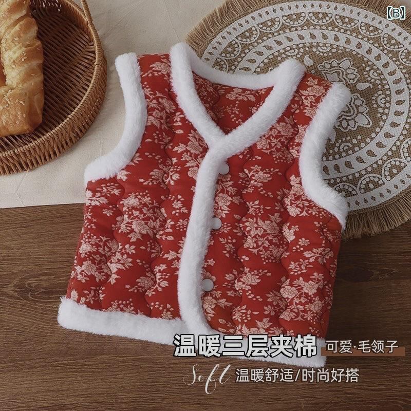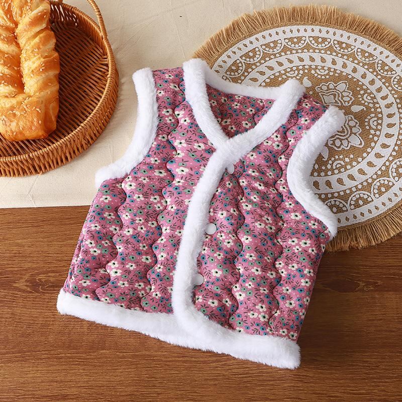 子供用ベスト ベビー 東北スタイル チョッキ 三層 極厚 防寒 アウター かわいい 背心 ポリエステル 花柄 80cm 90cm 100cm 110cm 120cm 130cm 140cm