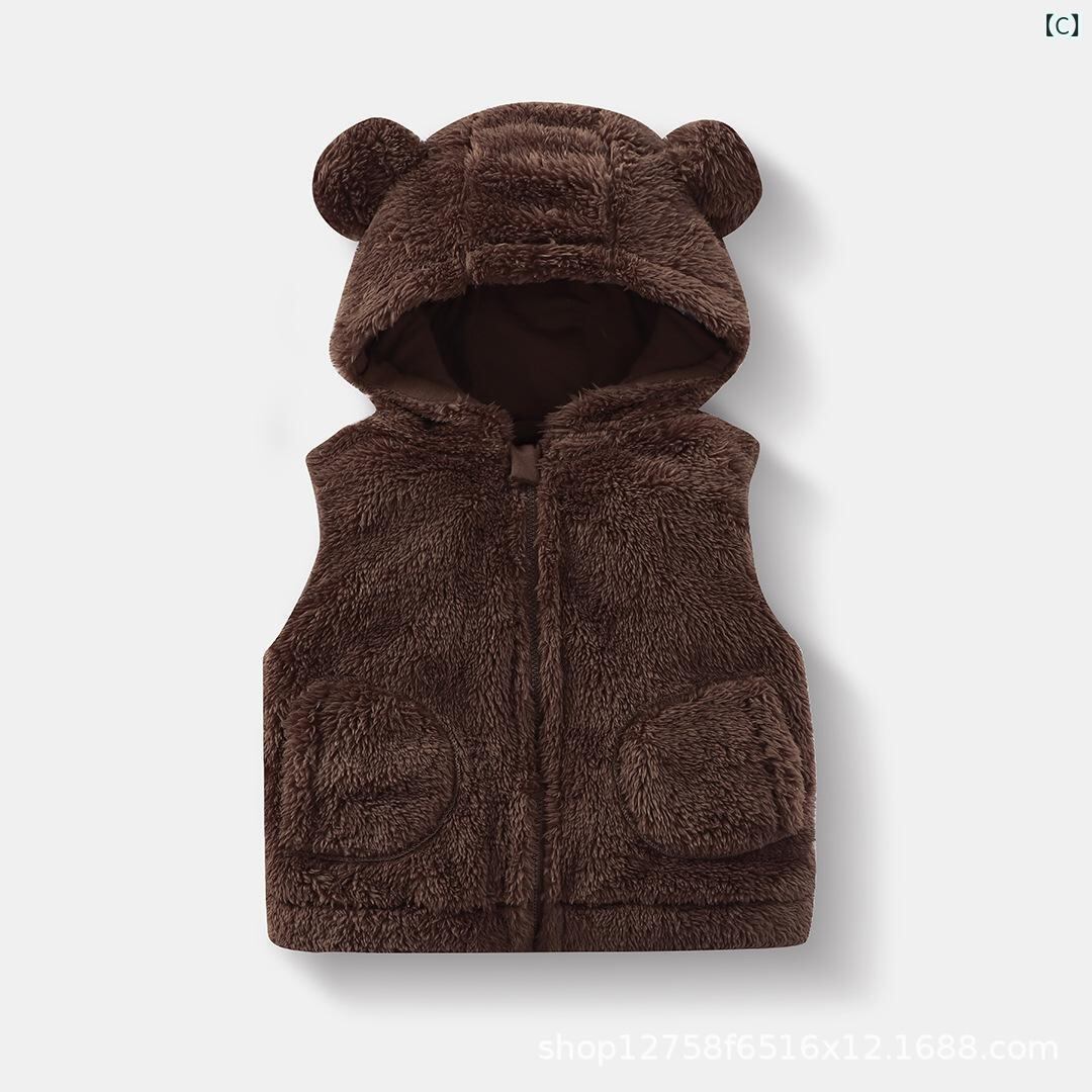 子供用ベスト 秋冬 フリース 連帽 ジップアップ ベスト クマ アップリケ ノースリーブ ジャケット ルームウェア トップス かわいい 柔らかい ふわふわ あったか ポリエステル