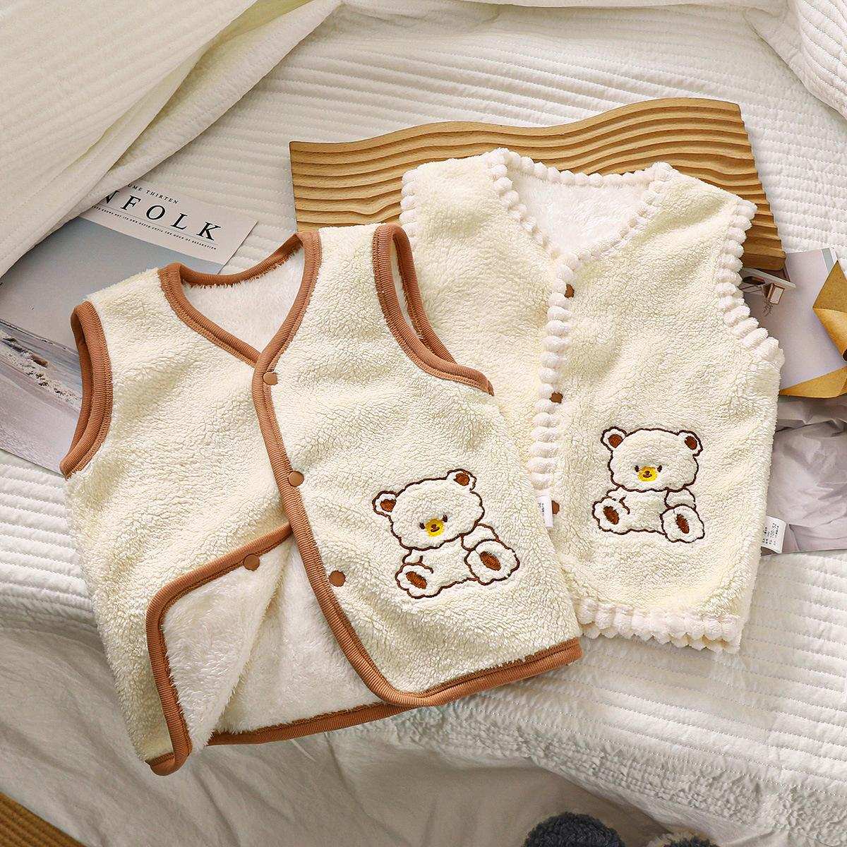子供用ベスト 秋冬 韓国風 ボア 刺繍入りクマ ボタン留め かわいい おしゃれ 暖かい 防寒 普段使い お出かけ アウター