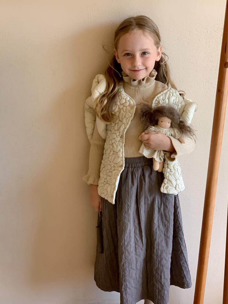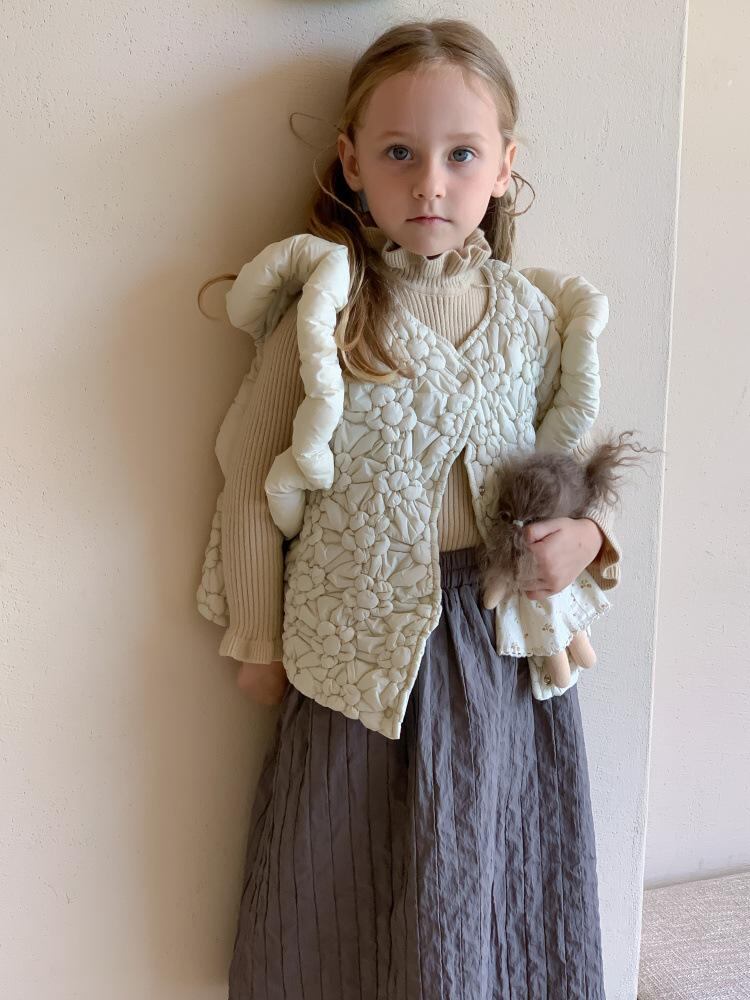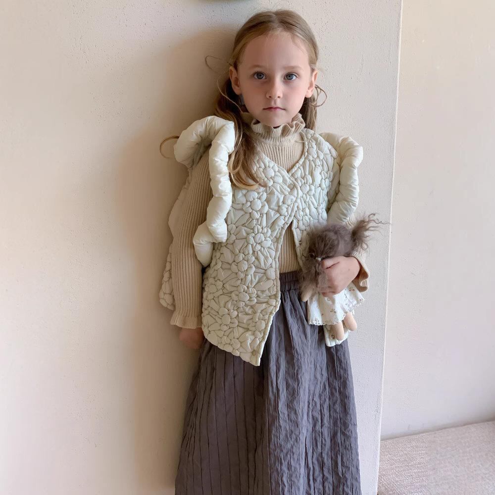 子供用ベスト 秋冬 女の子 中綿入り 厚手 ベビー ノースリーブ トップス アウター 米白 90 100 110 120 130cm かわいい 韓国風 ポリエステル