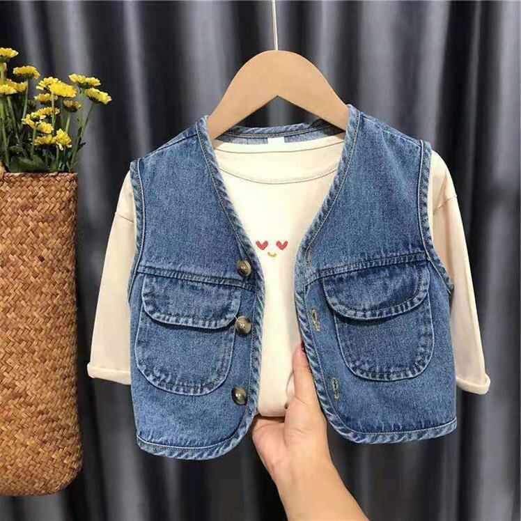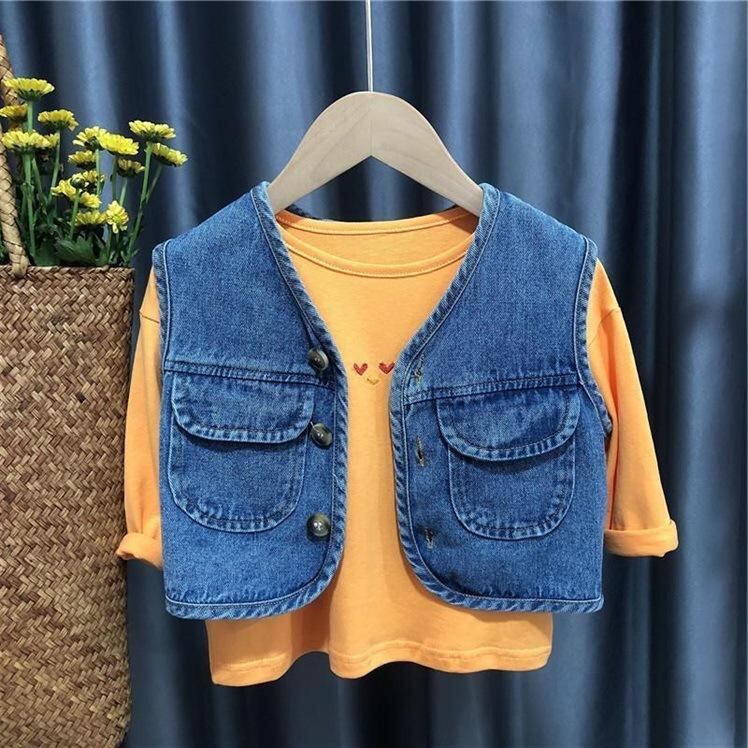 ベビー服 子供服 ベスト 春秋 薄手 ベビー 男の子 女の子 デニム アウター チョッキ コットン