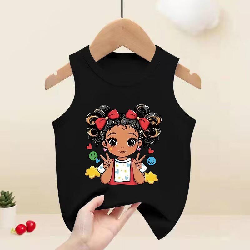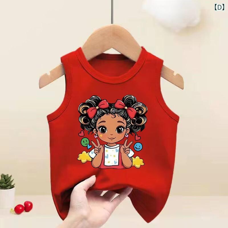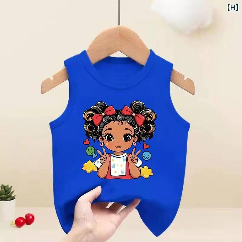 子供服 ベスト ノースリーブ タンクトップ 中 крупно キッズ 女の子 春夏 かわいい カトゥーン プリント 普段着 部屋着 アウトドア 8歳以上 100cm 110cm 120cm 130cm 140cm 150cm 160cm ポリエステル