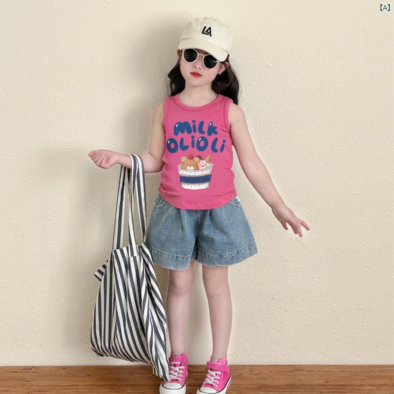 子供服 ベスト 女の子 夏 ノースリーブ トップス かわいい 韓国風 女児 ベビー服 普段着 部屋着