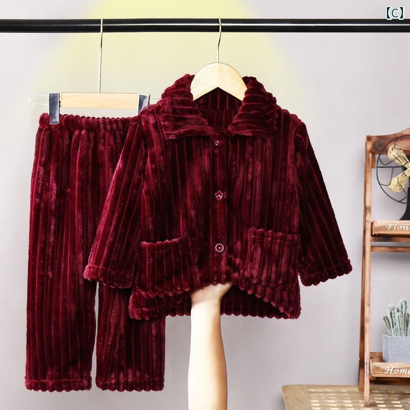 子供用パジャマ 男の子 女の子 フランネル 厚手 秋冬 セットアップ ルームウェア 部屋着 ピンク系 ネイビー ワインレッド グリーン グレー 8歳 9歳 10歳 11歳 12歳 13歳 14歳 140cm 150cm 155cm 聚乙烯醇繊維(维纶)