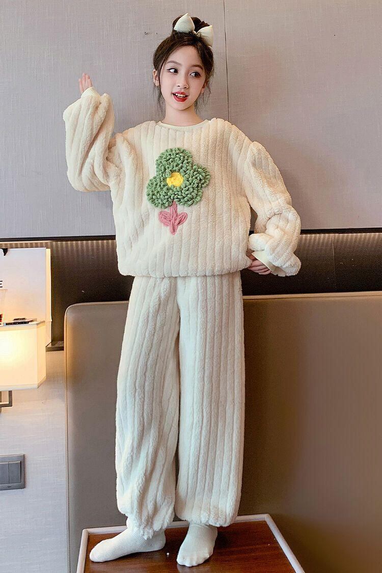 子供用パジャマ 女の子 秋冬 厚手 プリンセス フランネル 120cm 130cm 140cm 150cm 160cm 170cm 中大サイズ 暖か 保温 ルームウェア 部屋着 かわいい