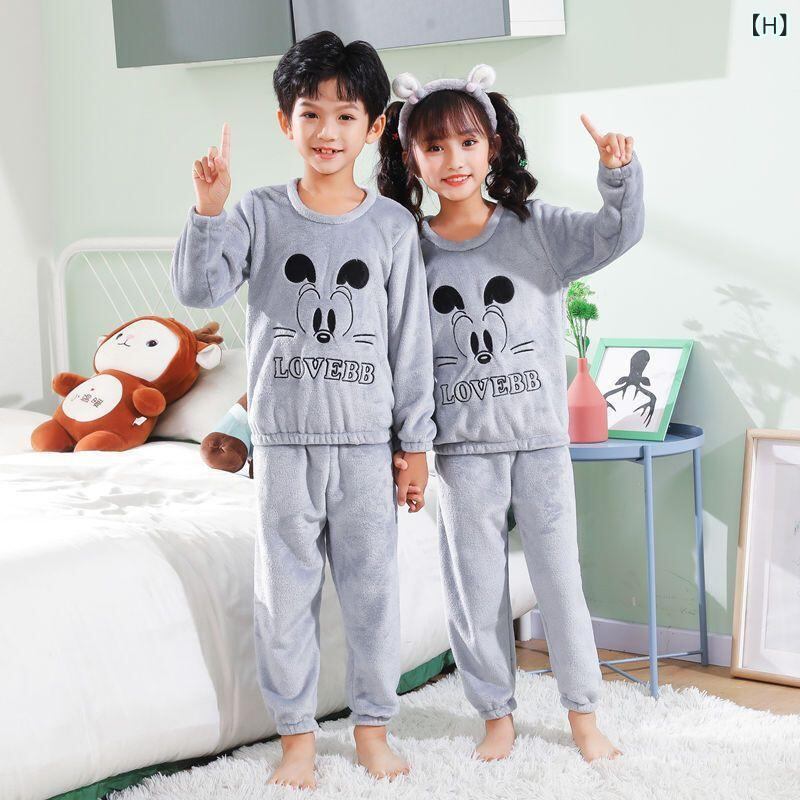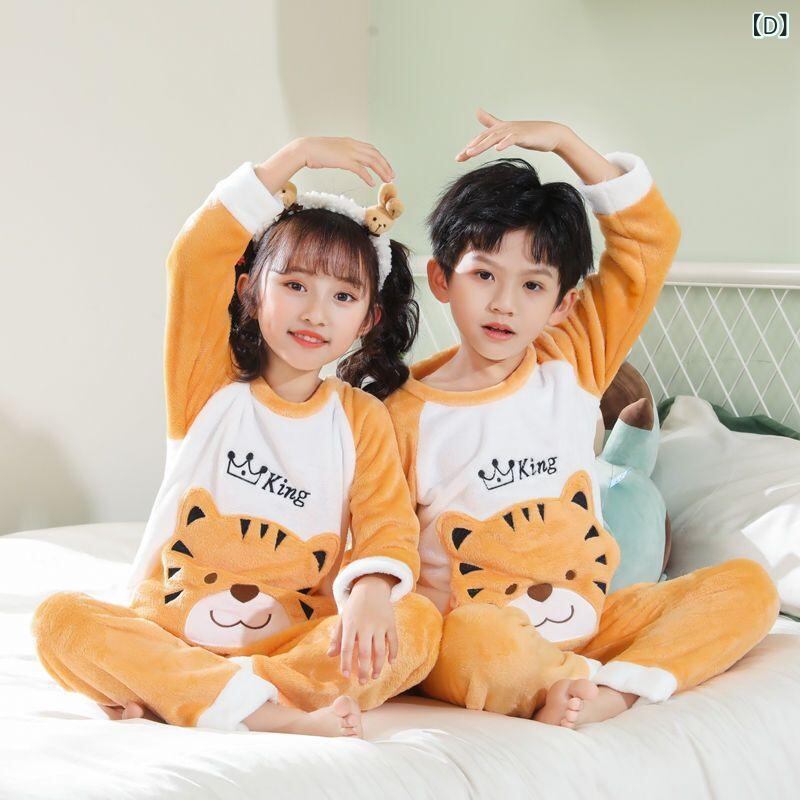 子供用パジャマ 秋冬 子供服 フランネル 厚手 暖かい 寝巻き キッズ ベビー 女の子 男の子 ホームウェア ルームウェア 上下セット かわいい
