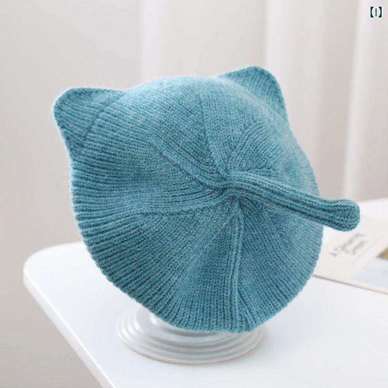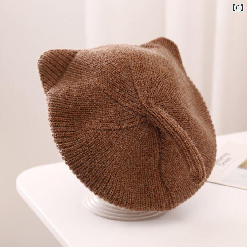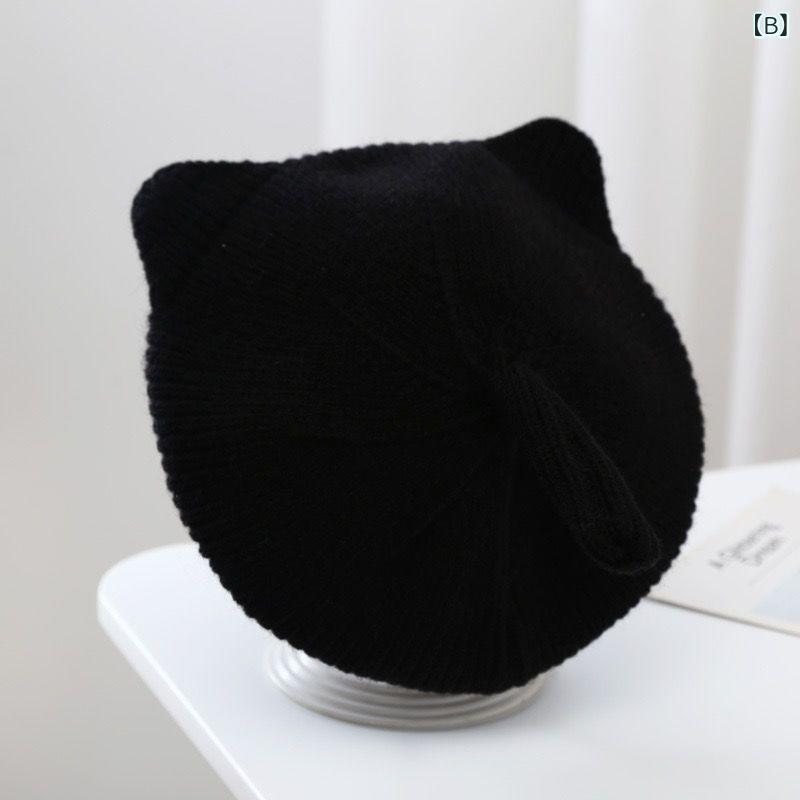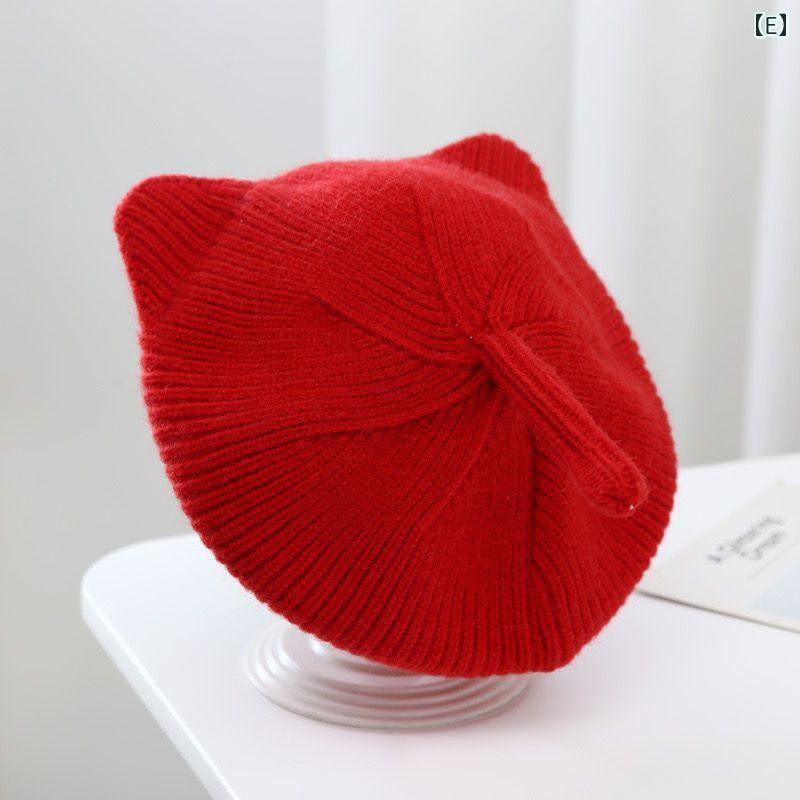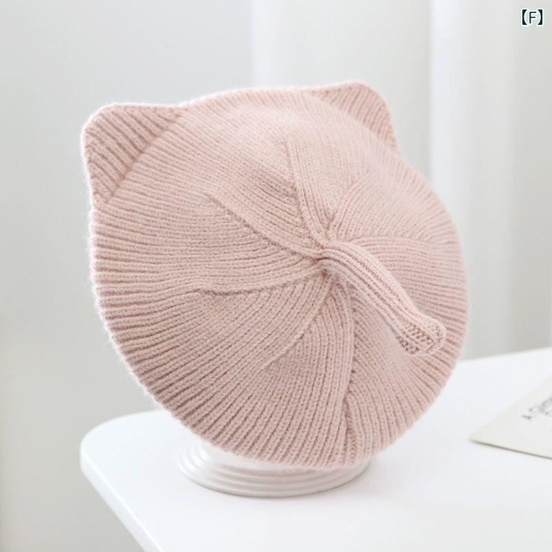 子供用ベレー帽 秋冬 ベビー 赤ちゃん ニット帽 猫耳付き ウール 帽子 女の子 かわいい 防寒 通園 通学