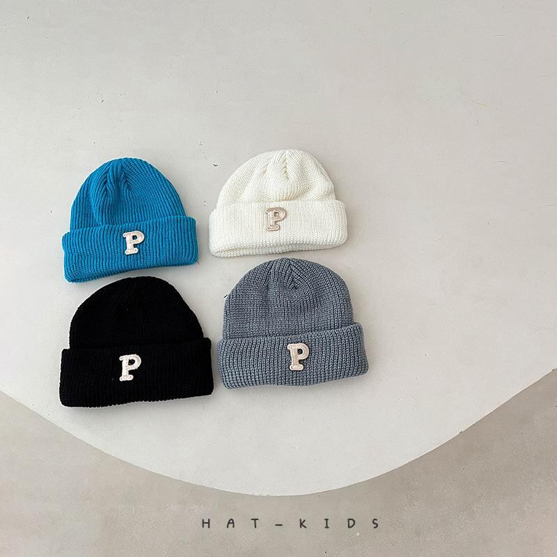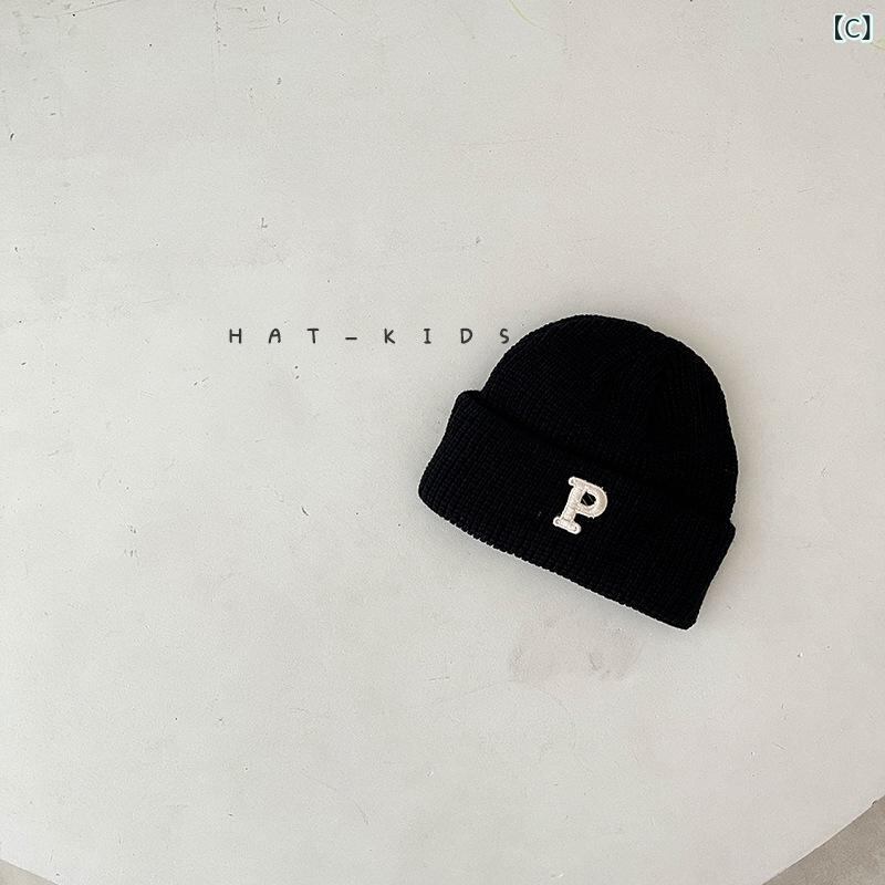 ニット帽 ベビー 幼児 男女兼用 秋冬 防寒 Pロゴ ワンポイント 無地 厚手 コットン 防風 保温 0歳 1歳 2歳 かわいい