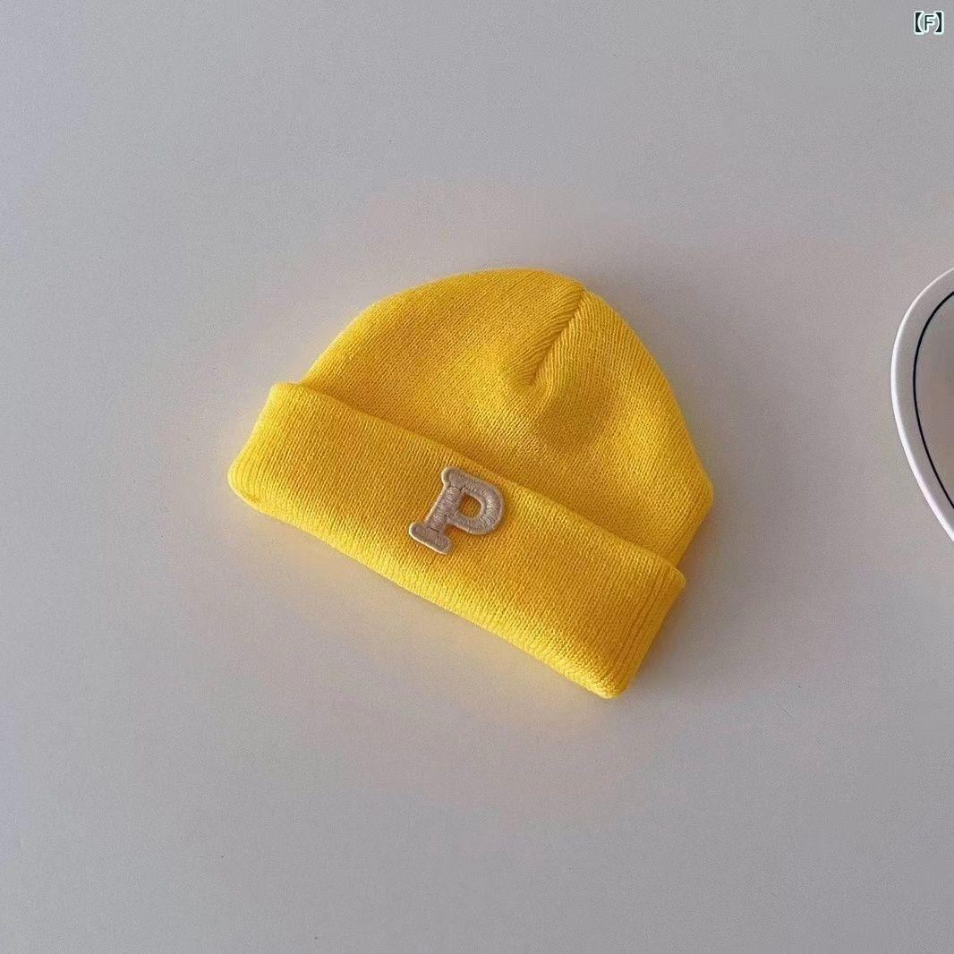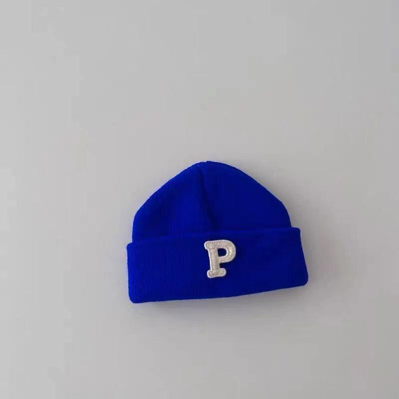 ベビー ニット帽 Pロゴ 秋冬 防寒 ビーニー 赤ちゃん 毛糸 帽子 男の子 女の子 0歳 1歳 2歳 耳当て付き かわいい