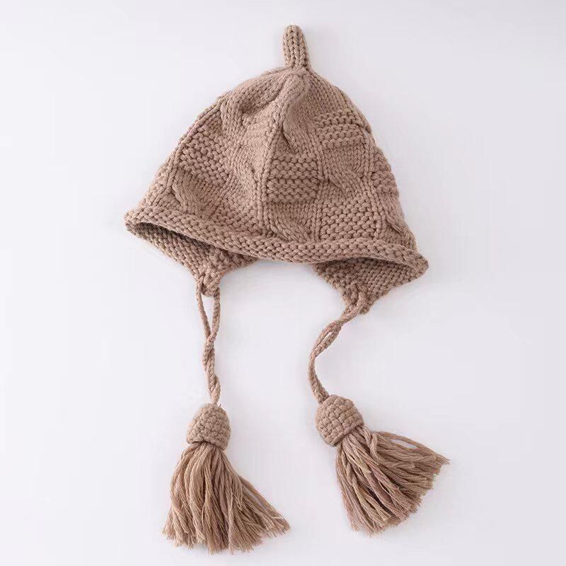 ニット帽 子供 女の子 無地 秋冬 防寒 帽子 ベージュ カフェオレ 伸縮性