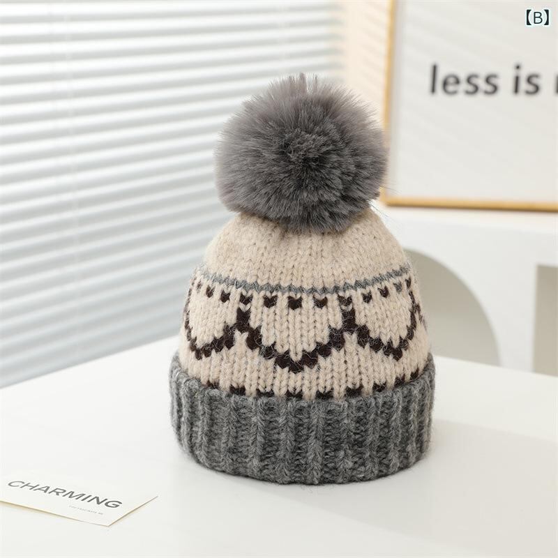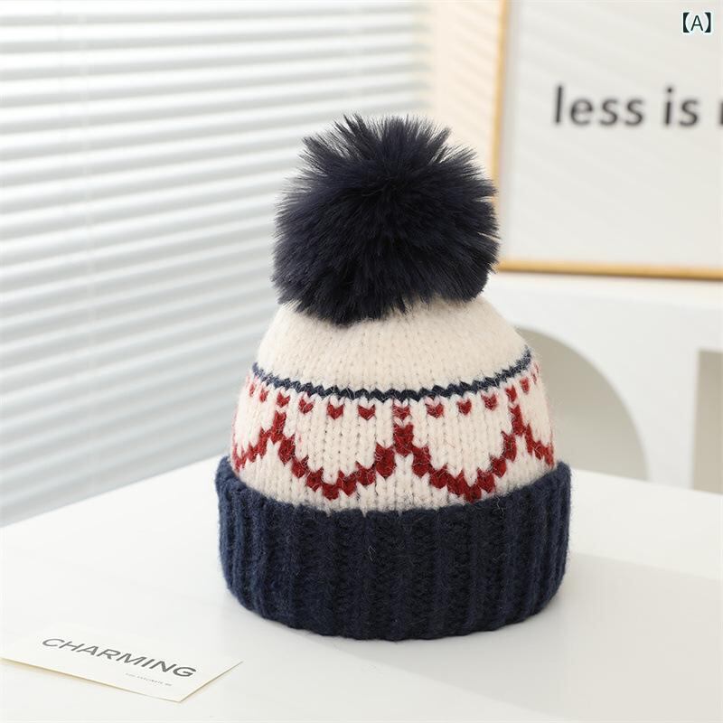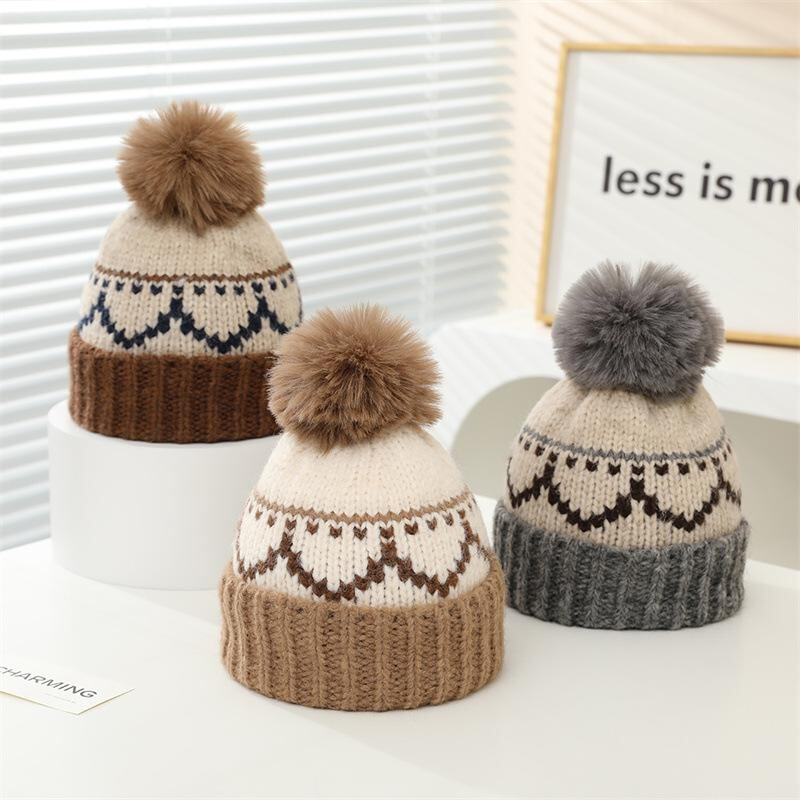帽子 キッズ ニット帽 防寒 暖かい 秋冬 かわいい ポンポン付き 裏起毛 菱形 パッチワーク グレー カーキ 赤 ネイビー 男の子 女の子 幼稚園 保育園 小学生 2歳 3歳 4歳 5歳 6歳 7歳