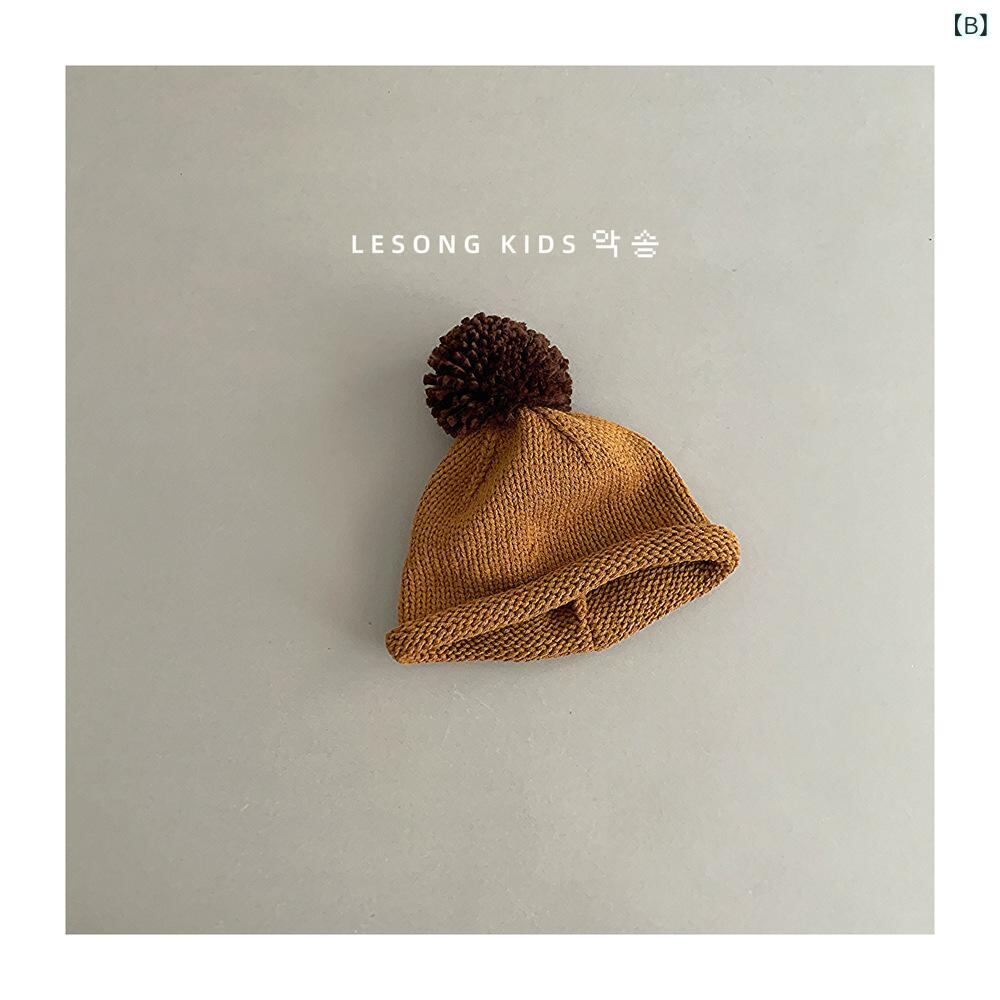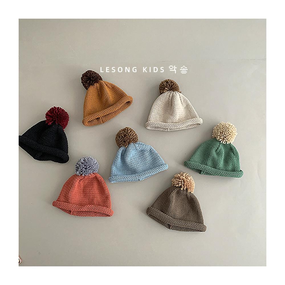 帽子 キッズ 秋冬 ニット帽 毛糸帽 ボンボン付き 瓜皮帽 防寒 保温 男の子 女の子 子供 幼児 1歳 2歳 3歳 4歳 5歳 ベージュ イエロー ブルー グリーン オレンジ ブラウン ブラック