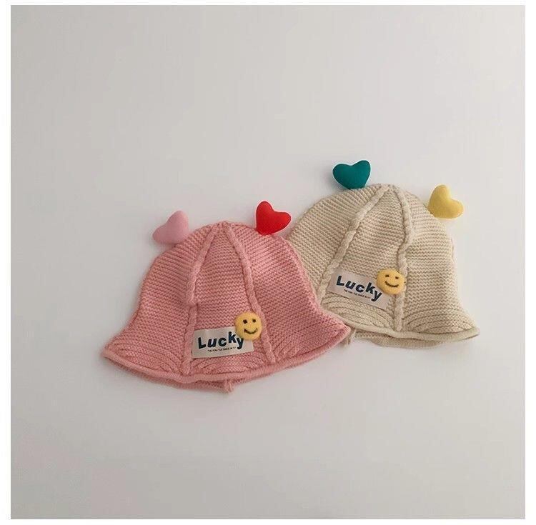帽子 キッズ ニット帽 秋冬 かわいい 小さな愛のハート 厚手 防寒 ベビー 漁夫帽 バケットハット 春
