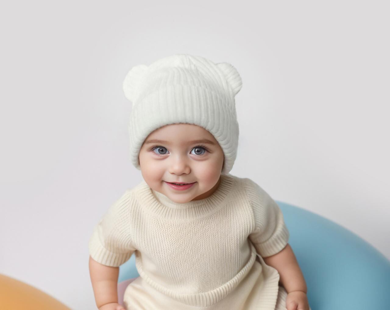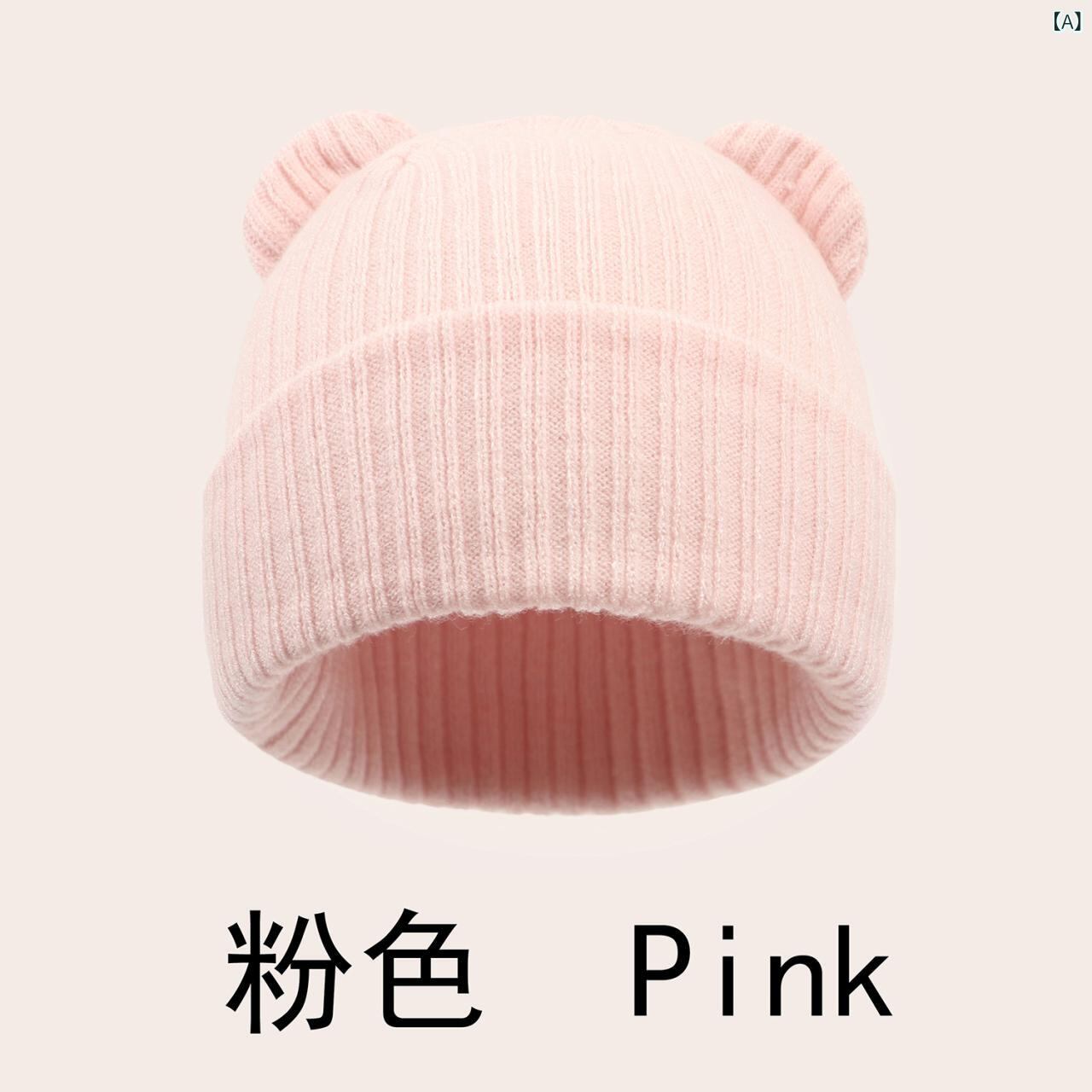 帽子 ベビー ニット帽 秋冬 乳幼児 小熊 伸縮性 あったか かわいい 防寒 男の子 女の子 ピンク系 ベージュ