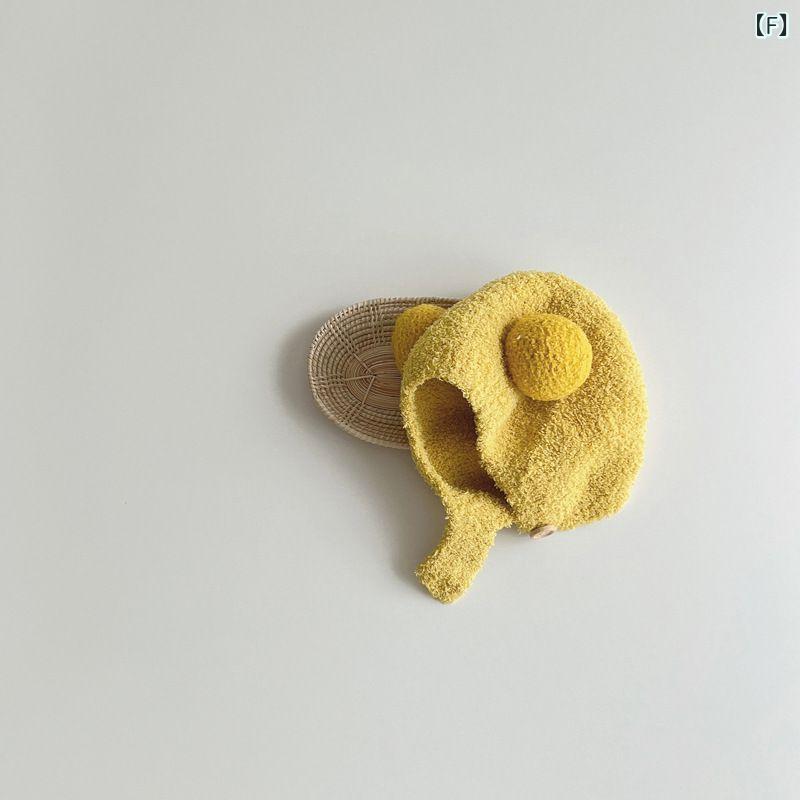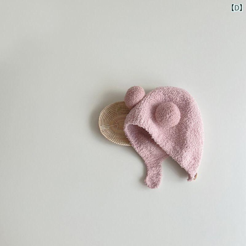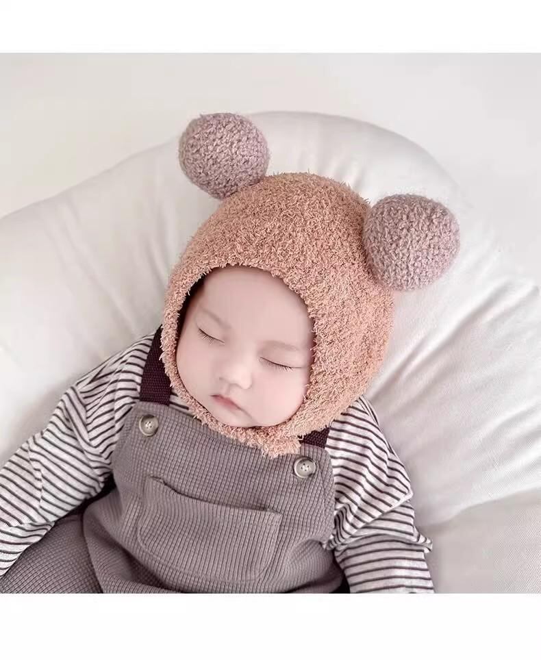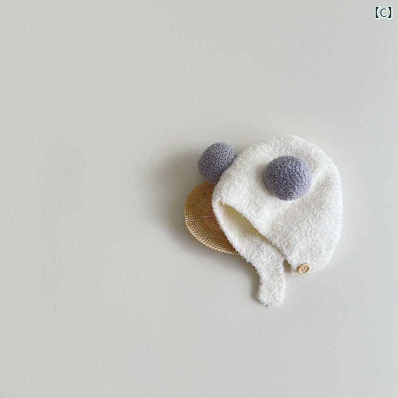 帽子 ベビー 秋冬 新生児 乳幼児 耳保護 帽子 コットン かわいい 男の子 女の子 ニット帽 ぬいぐるみ 大童 キャラメル色 ベージュ 白 ピンク カーキ 黄色 黒 防寒