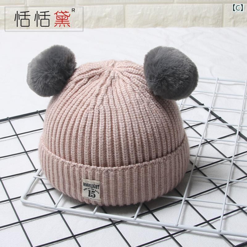 ニット帽 ベビー キッズ 秋冬 防寒 保温 毛糸 帽子 幼児 子供用 かわいい 無地 伸縮性 暖かい ブラック グレー ピンク系 ベージュ レッド