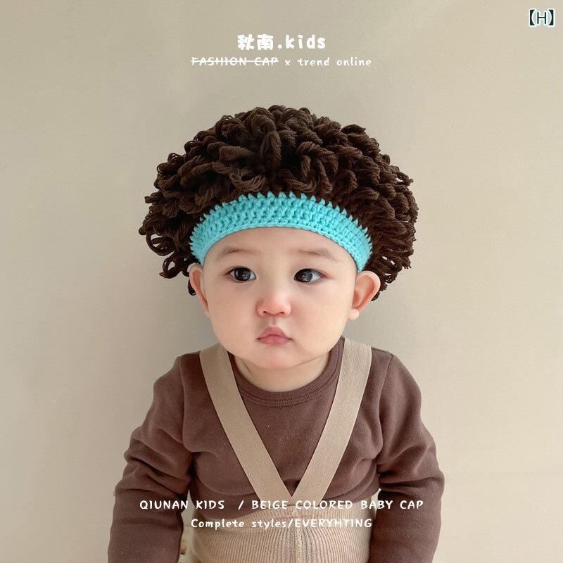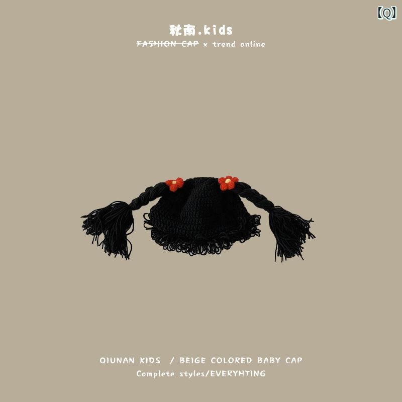 帽子 キッズ ベビー ニット帽 秋冬 婴儿 赤ちゃん ぼうし 毛糸 かわいい 防寒 保温 伸縮性 あったか 暖かい 柔らかい 仮装 コスプレ ウィッグ ブレード ベージュ