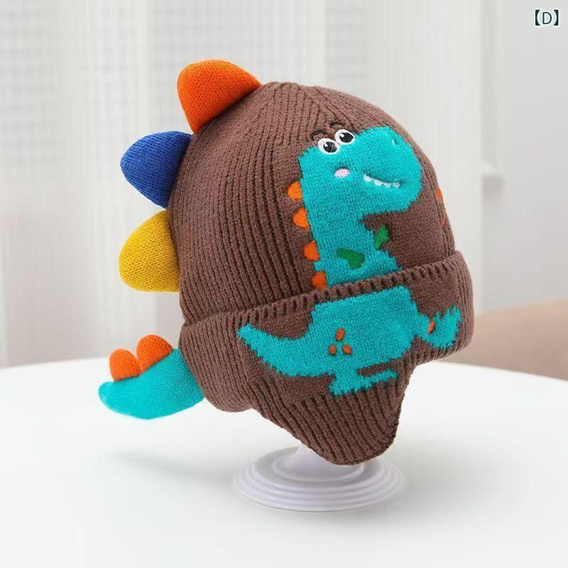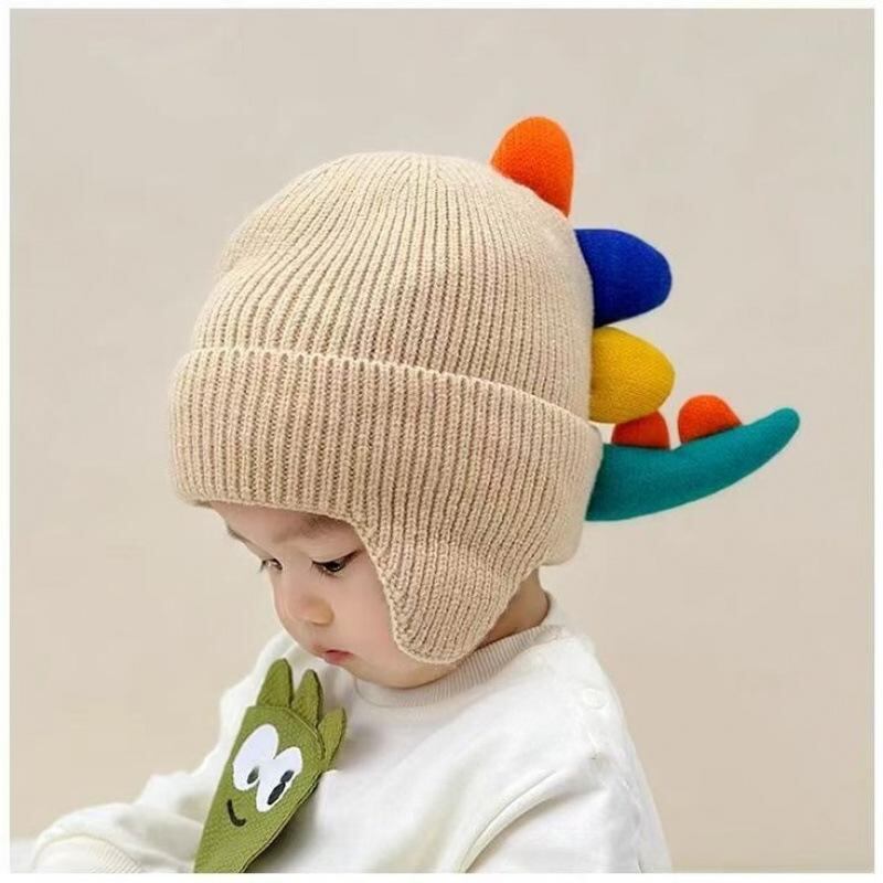 ニット帽 キッズ 子供用 小恐竜 耳当て付き 秋冬 防風 保温 深藍色 米色 浅藍色 コーヒー色 かわいい 1歳 2歳 4歳 5歳 6歳