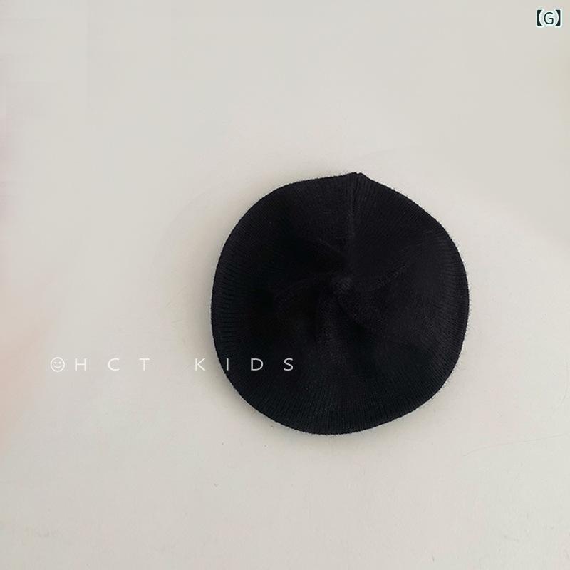 ニット帽 ベビー キッズ 秋冬 ベレー帽 赤ちゃん 柔らかい 帽子 毛糸 保温 ベージュ ピンク系