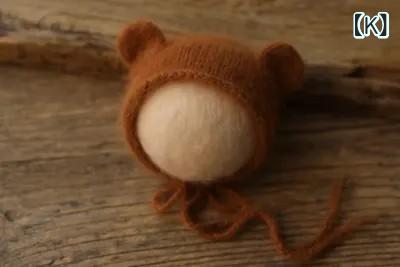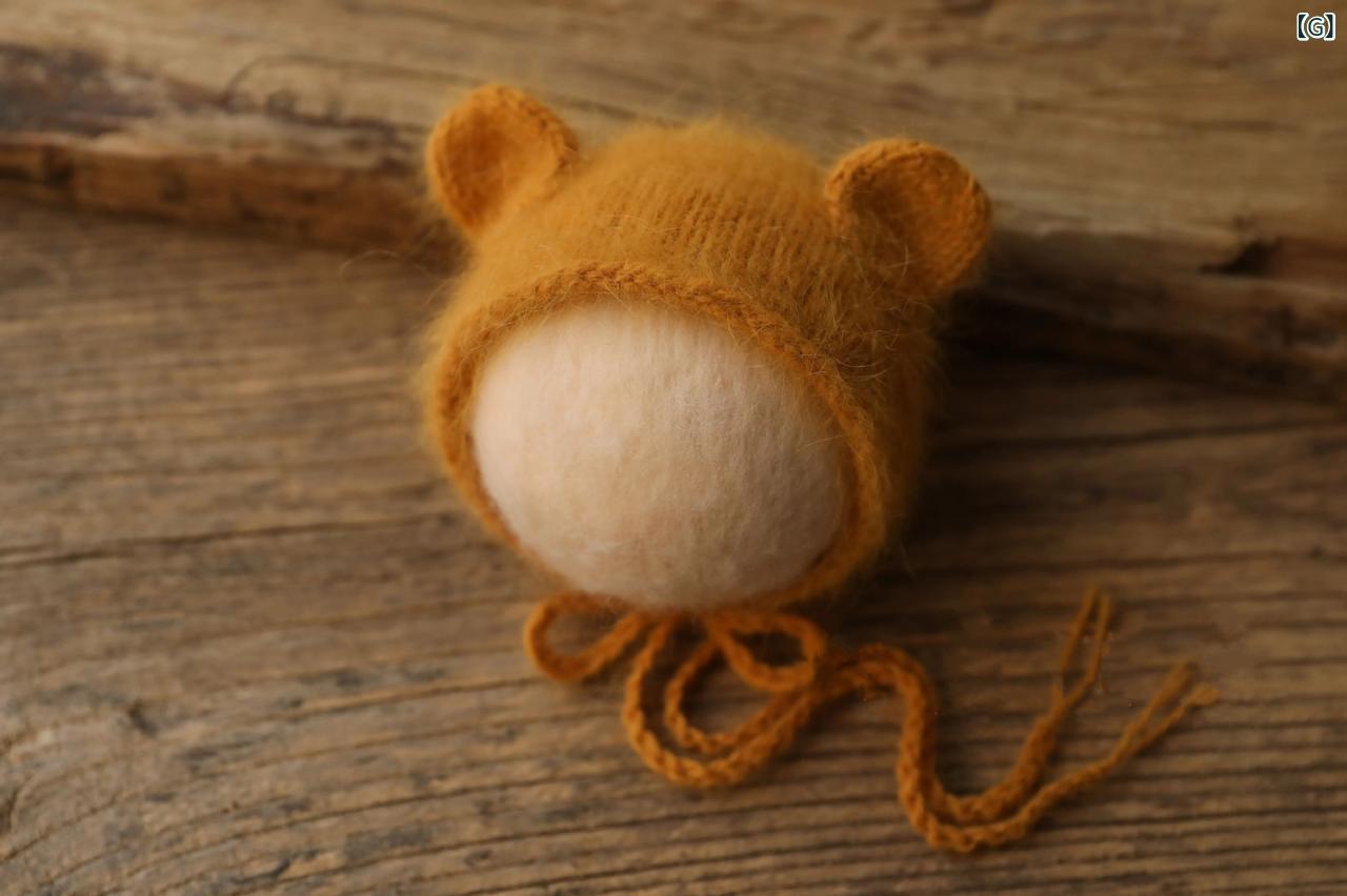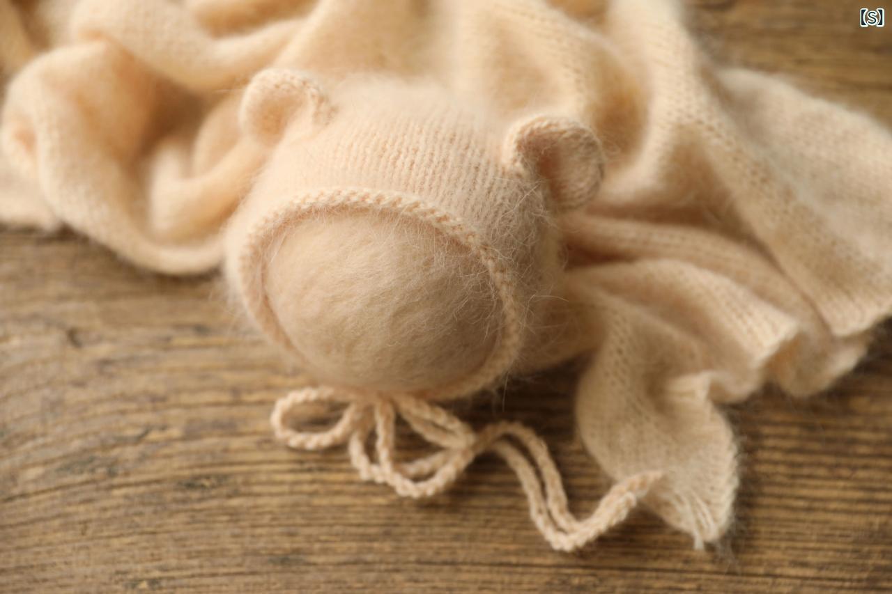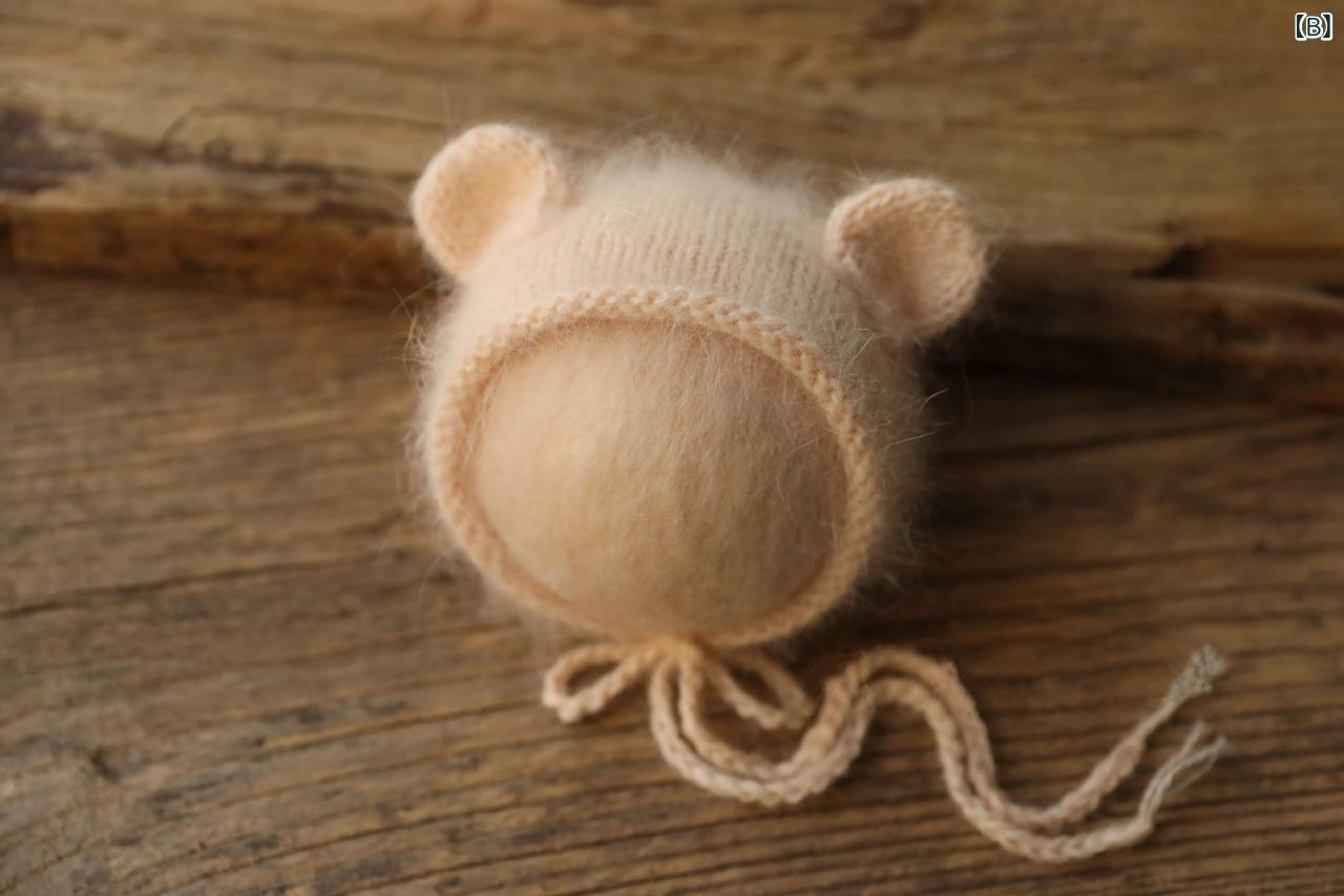 ベビー ニット帽 小熊 新生児 水貂绒 フォトプロップ 満月 赤ちゃん 小耳 帽子 白 杏色 灰色 薄ピンク 肉ピンク 濃いピンク 黄色 薄紫 ラクダ色 ワインレッド 栗色 濃いブルー 米白 薄茶 水色 帽子とくるみ
