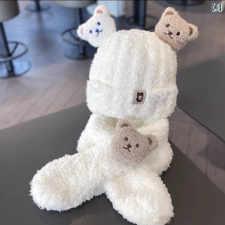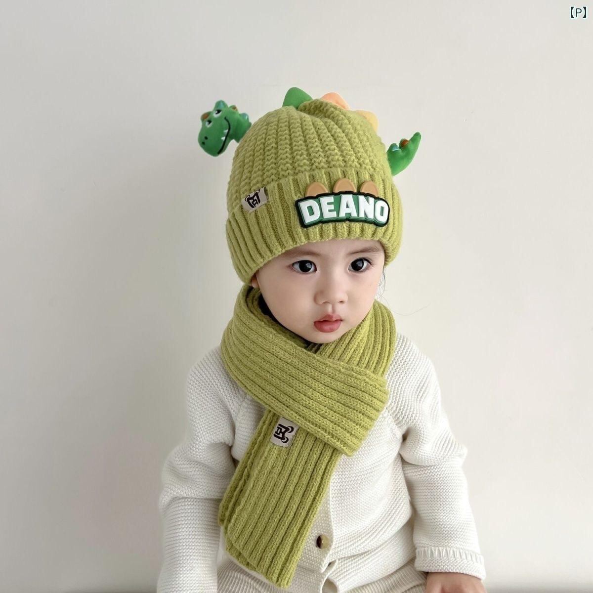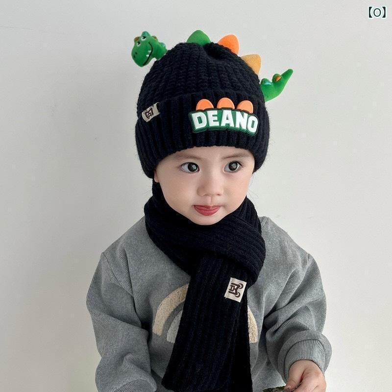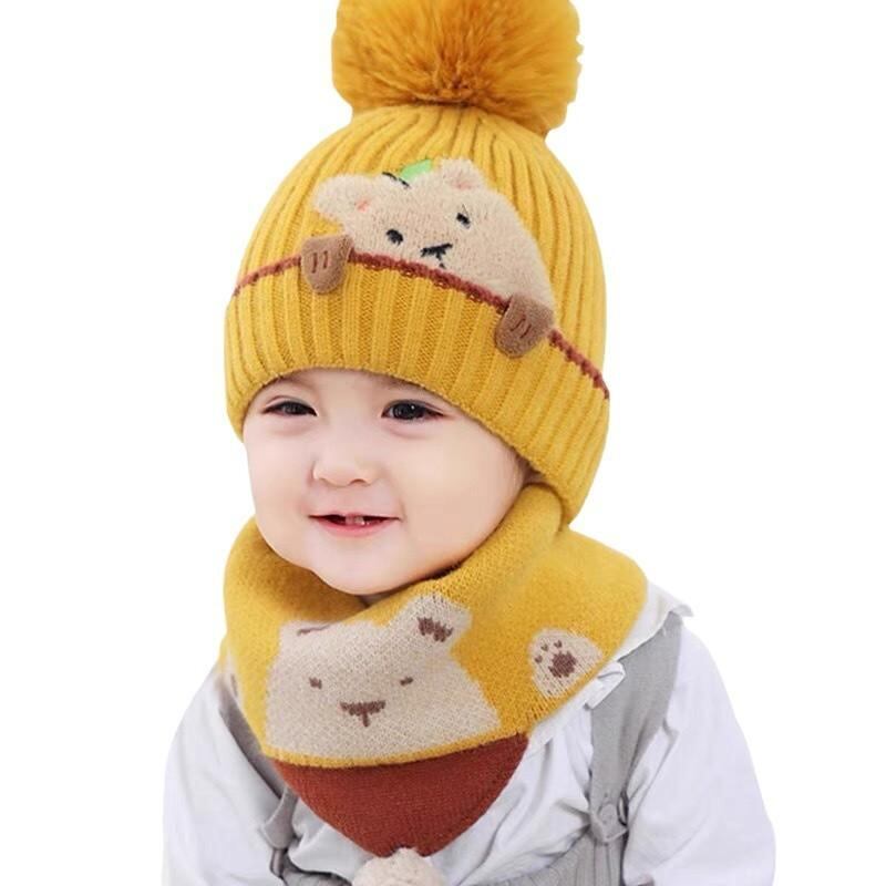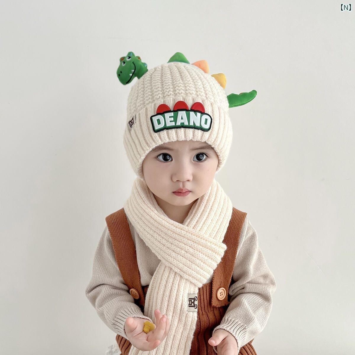帽子 ベビー キッズ ニット帽 ネックウォーマー 2点セット 秋冬 防寒 耳当て付き かわいい 小さなペンギン 三匹のクマ 恐竜デザイン イエロー レッド ピンク ブルー カーキ ベージュ ホワイト ブラック グリーン 1歳 2歳 6ヶ月 12ヶ月 鹿毛