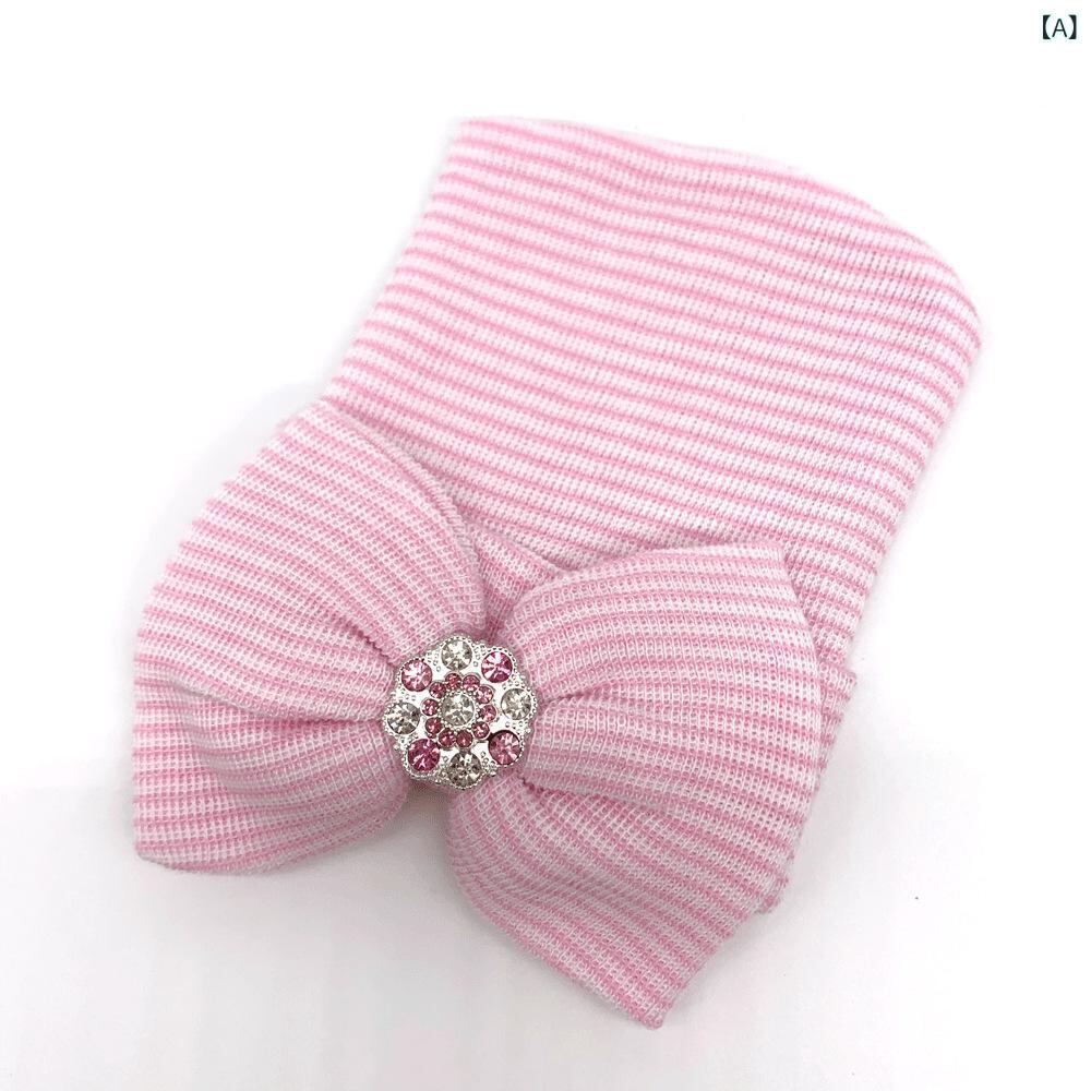 ベビー ニット帽 大 かわいい 蝶 リボン ラインストーン 新生児 帽子 赤ちゃん 帽子 通気性 オールシーズン