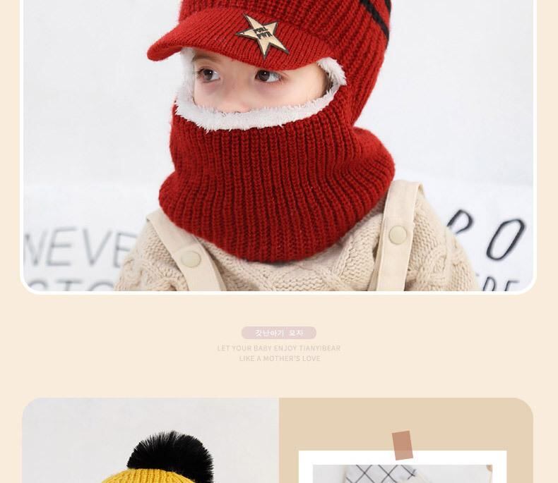 帽子 キッズ ニット帽 裏起毛 防寒 一体型 男の子 女の子 ウール キャップ つば付き 秋冬 1歳 2歳 3歳 4歳 5歳 6歳 7歳 8歳
