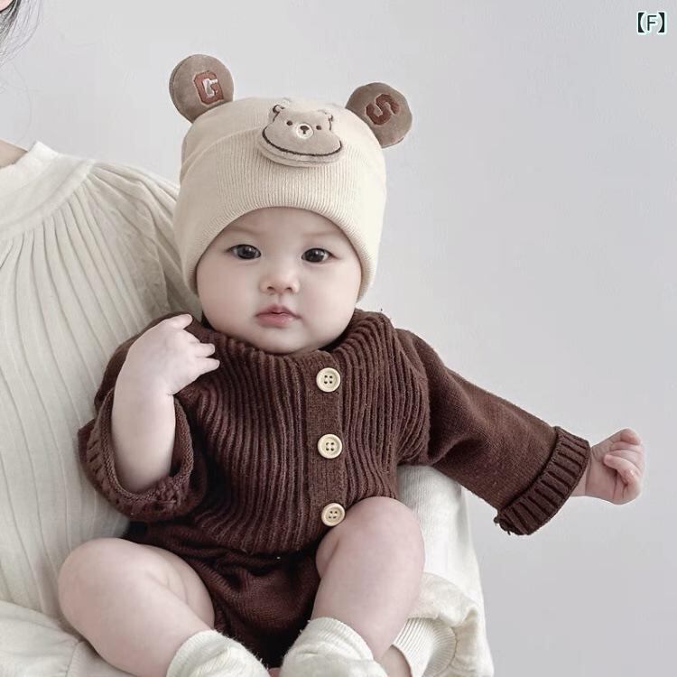 帽子 ベビー 新生児 赤ちゃん用 秋冬 防寒 保温 かわいい 綿 毛糸 クマ耳付き 外出 普段使い